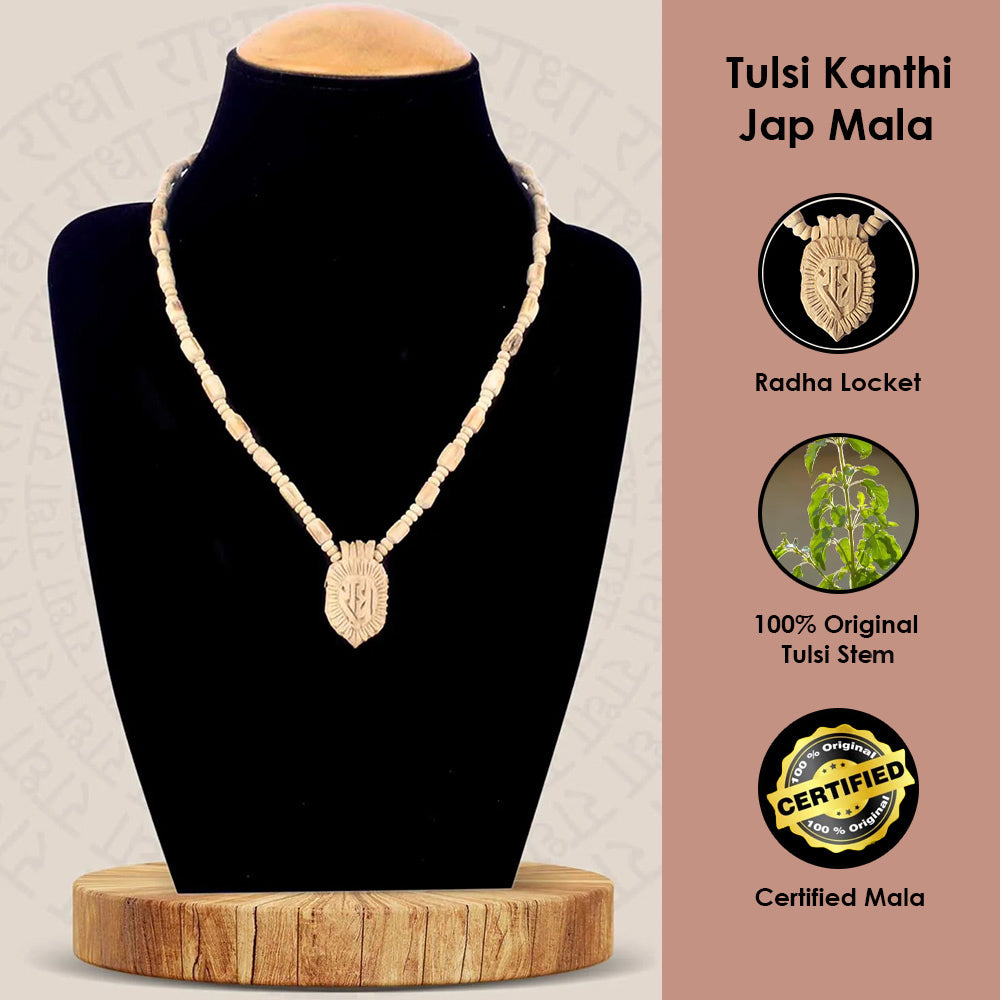 • Package Contains: 1 Pc 100% Original Holy Tulsi Kanthi Bead Mala With Wooden Radha Locket