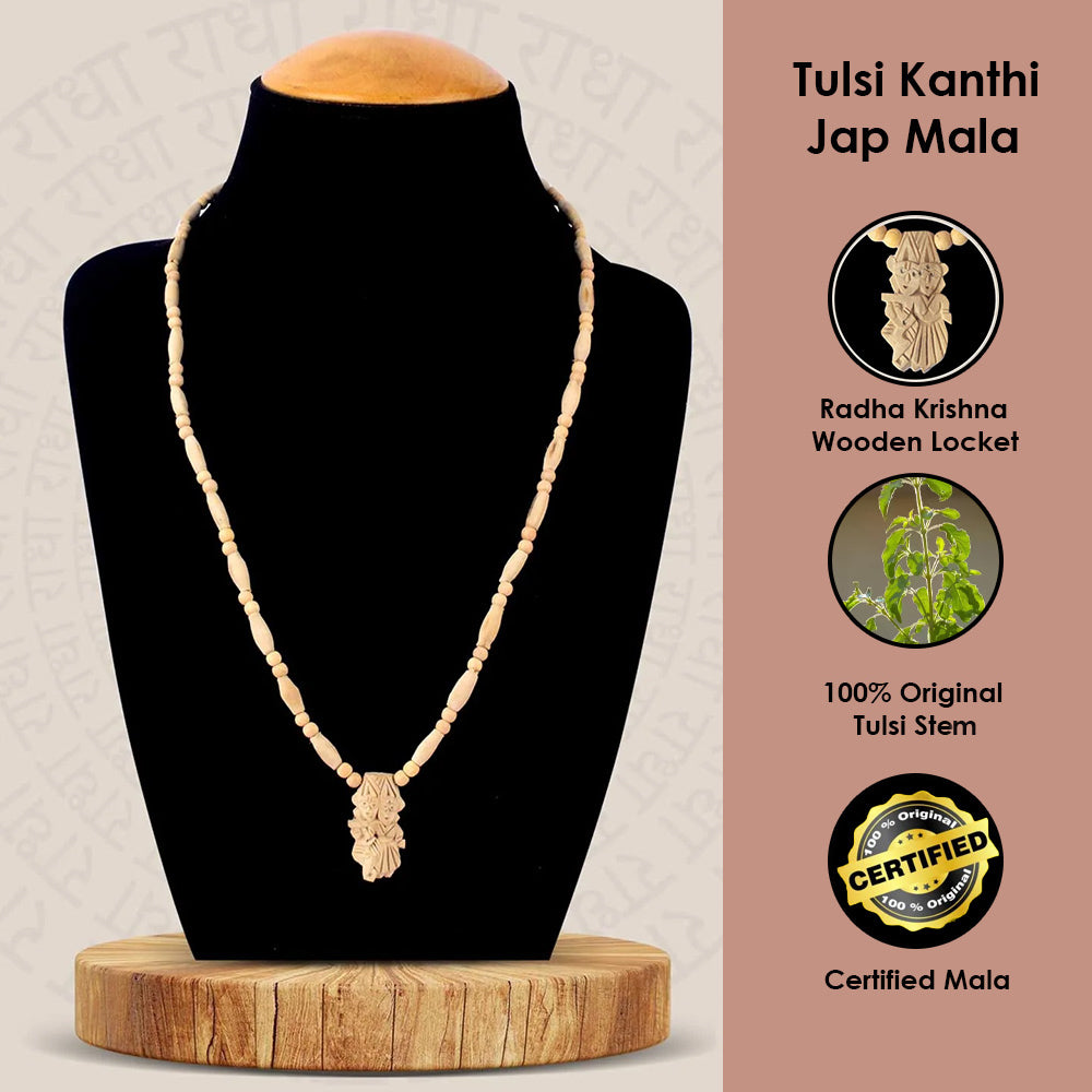 • Package Contains:Β 1 Pc 100% Original Authentic Tulsi Kanthi Beads Mala With Wooden Radha Krishna Locket (Size-2)