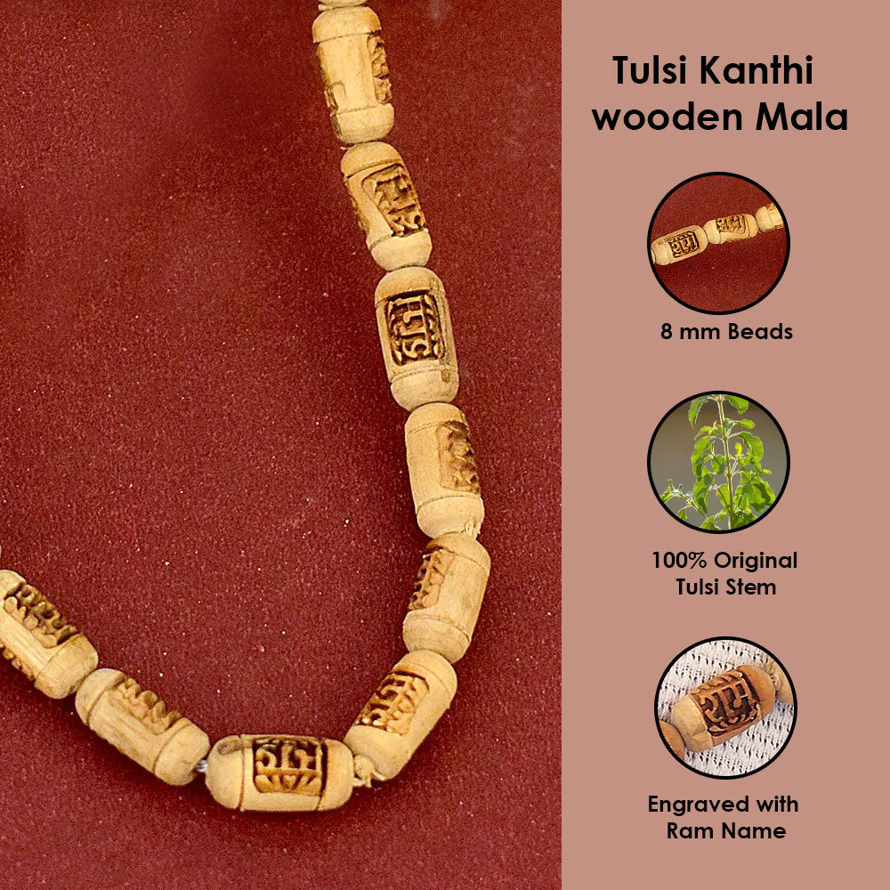 • Package Contains: 100% Pure Tulsi Kanthi Wooden Mala Engraved with Ram Name