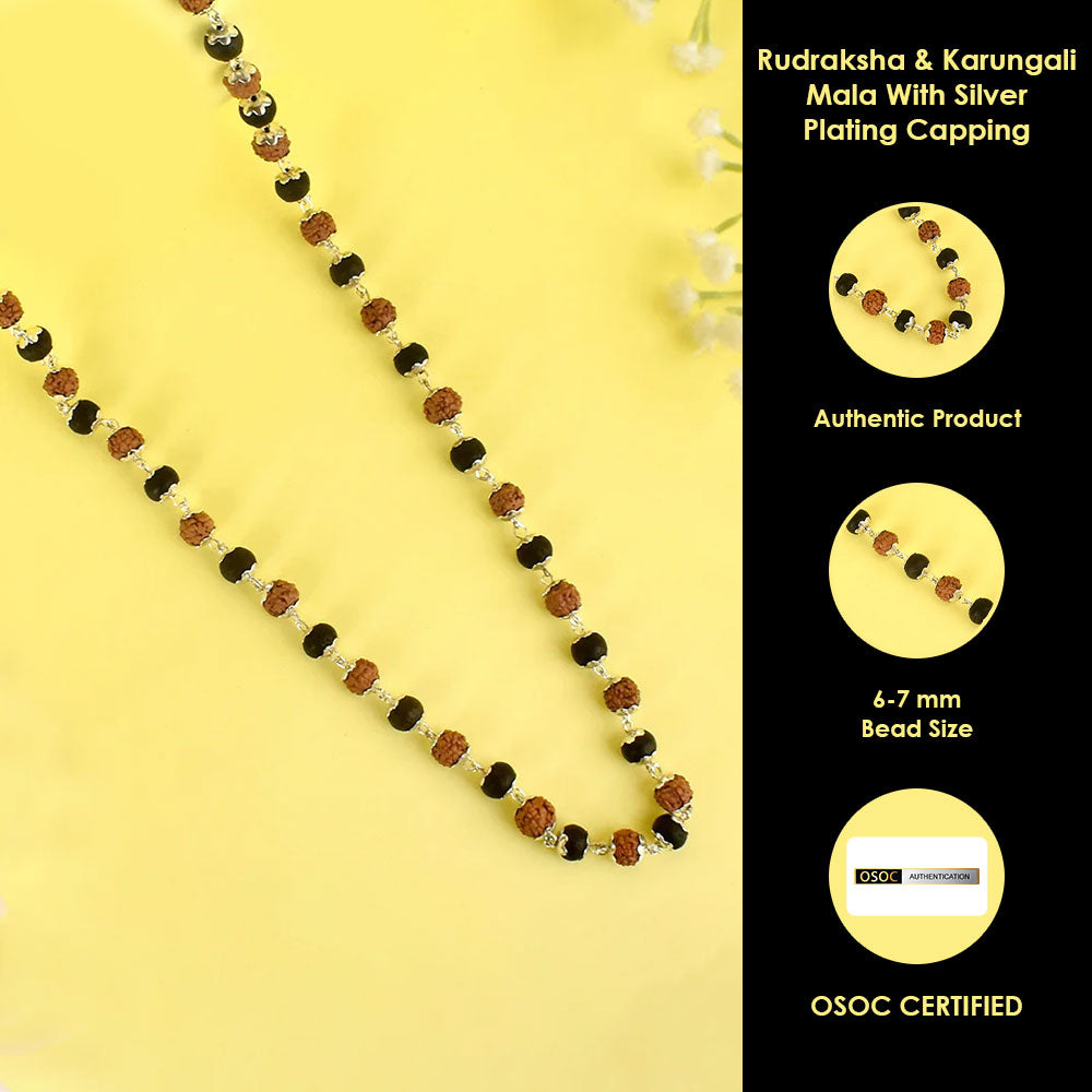 Govt. Certified Rudraksha & Karungali Mala With Silver Plating Capping
