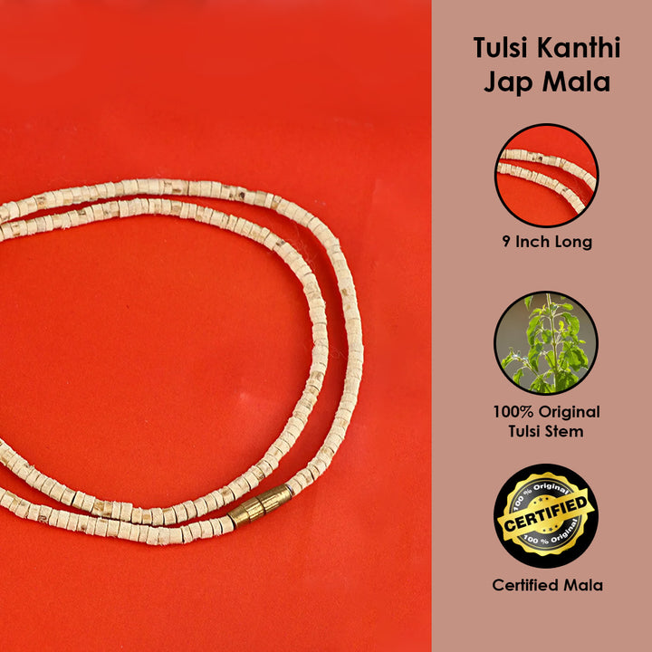 A Tulsi Mala is a string of beads made from the wood of the sacred Tulsi plant (Ocimum sanctum). It is widely used in Hinduism, Jainism, and Buddhism for chanting (Japa) and wearing as a protective necklace. The power of Tulsi Mala is believed to enhance spirituality, bring inner peace, and protect the wearer from negative energies.