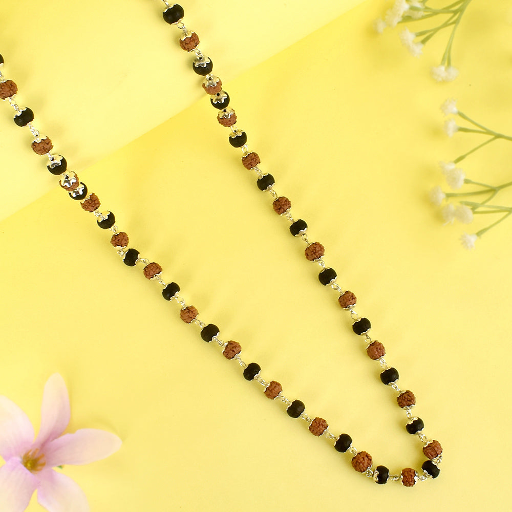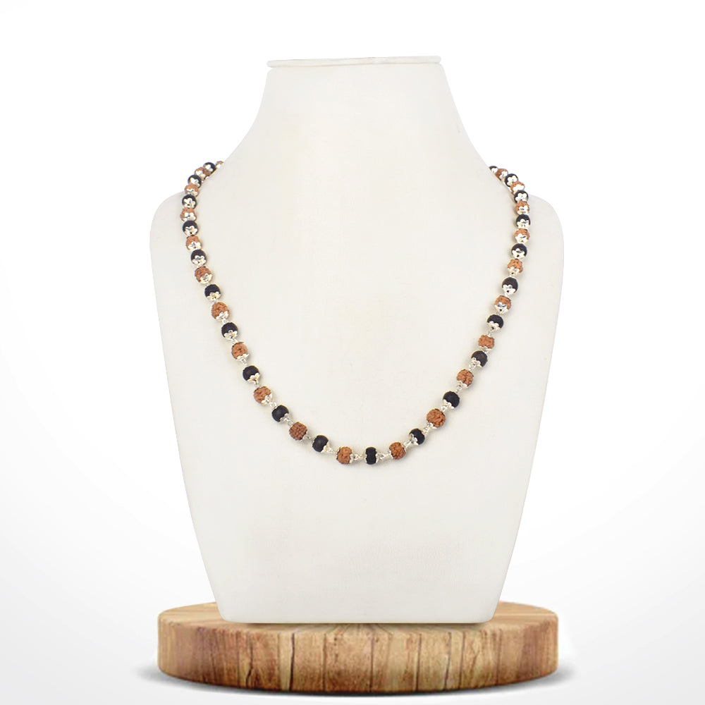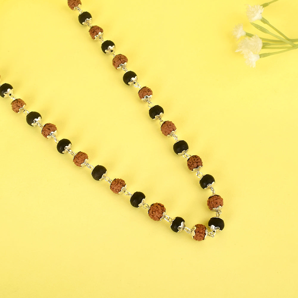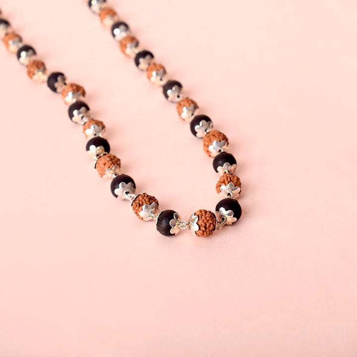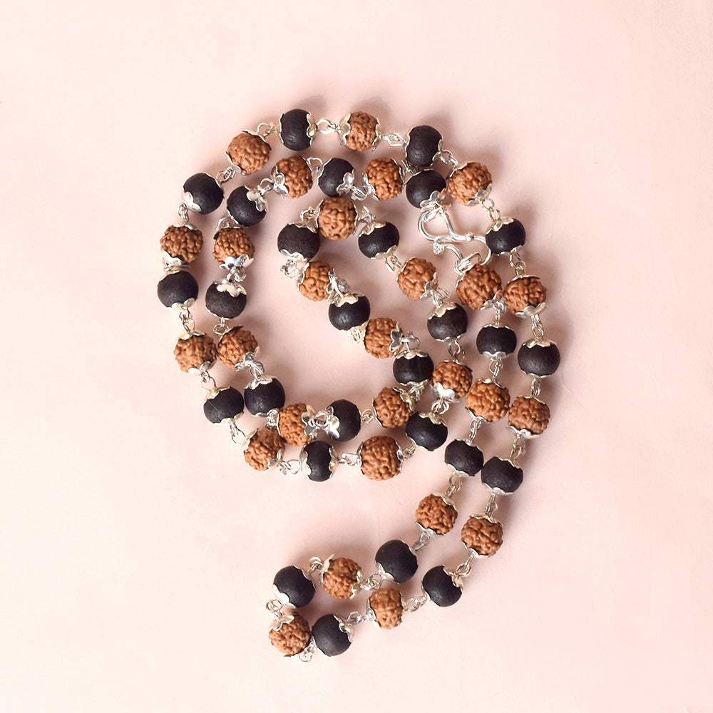 Govt. Certified Rudraksha & Karungali Mala With Silver Plating Capping