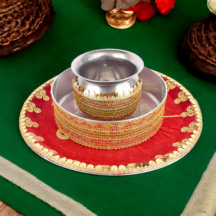 Handcrafted Elegant Red Karwa Chauth Thali Set of (3pc)|Satvikstore.in – satvikstore.in