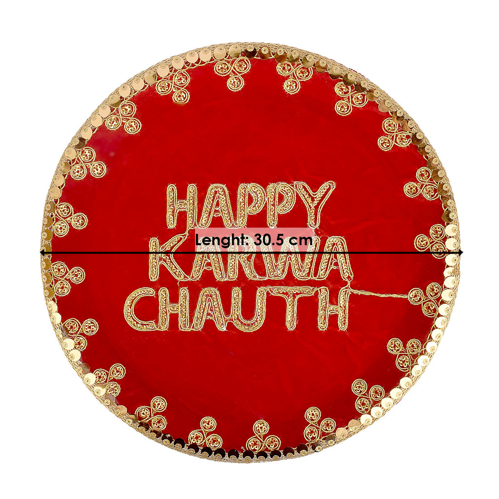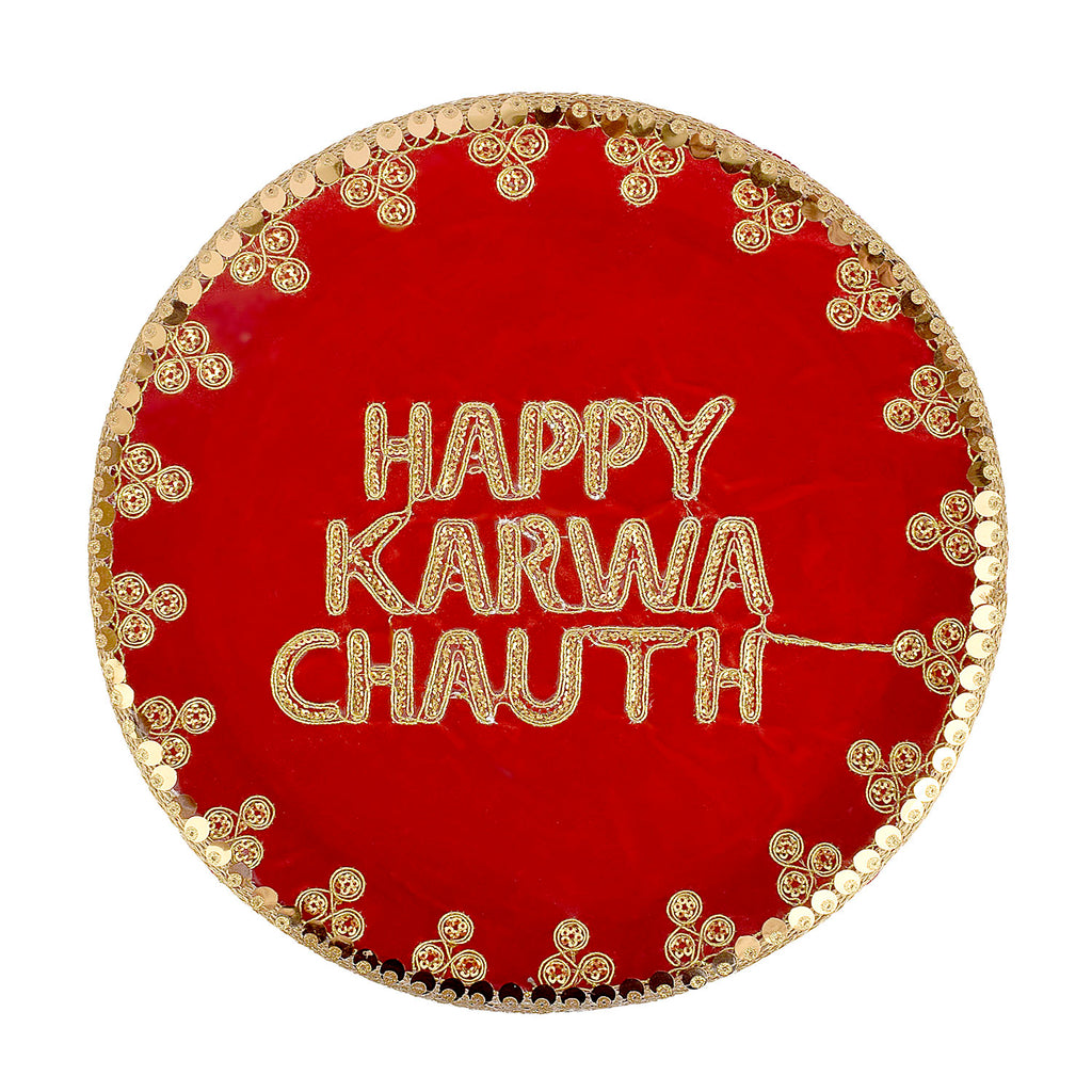 Item Name: Handcrafted Elegant Red Karwa Chauth Thali Set of (3pc)