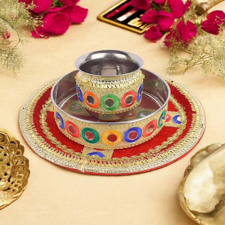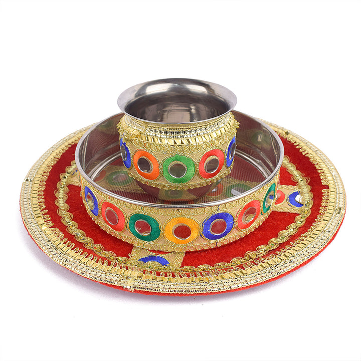 Item Name: Red Karwa Chauth Thali Set with Elegant Unique Design