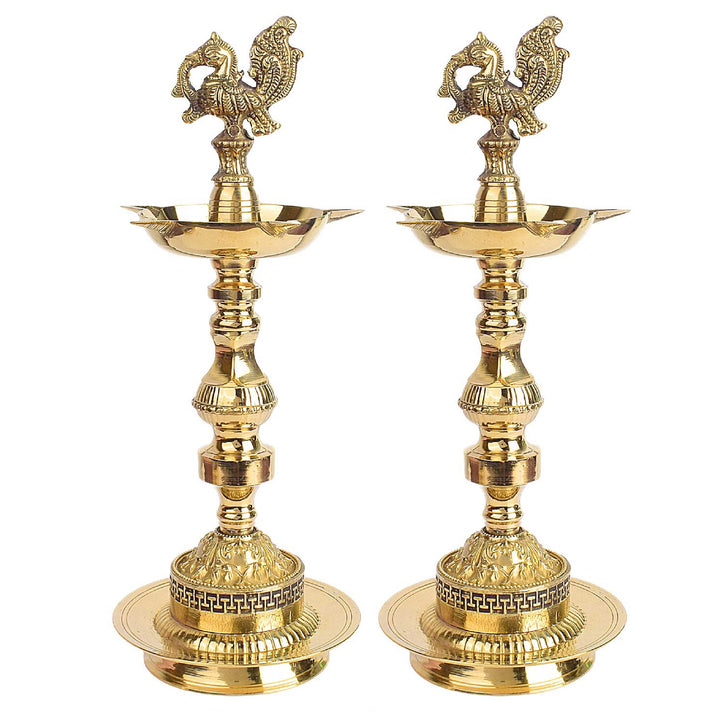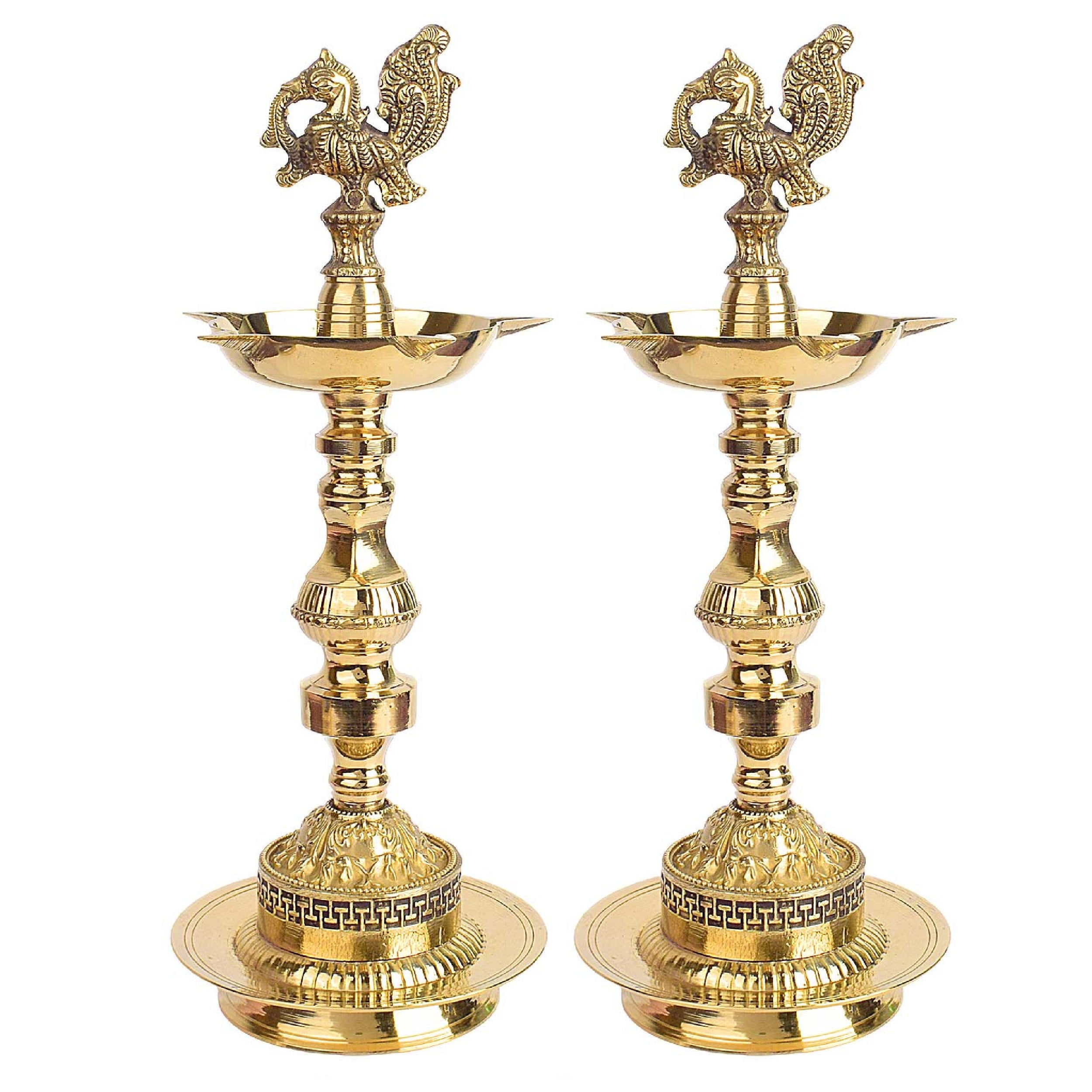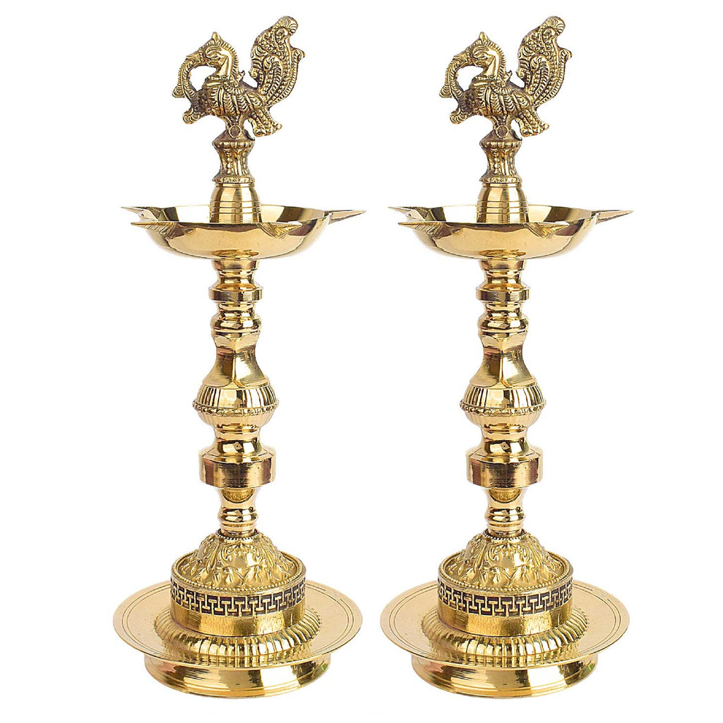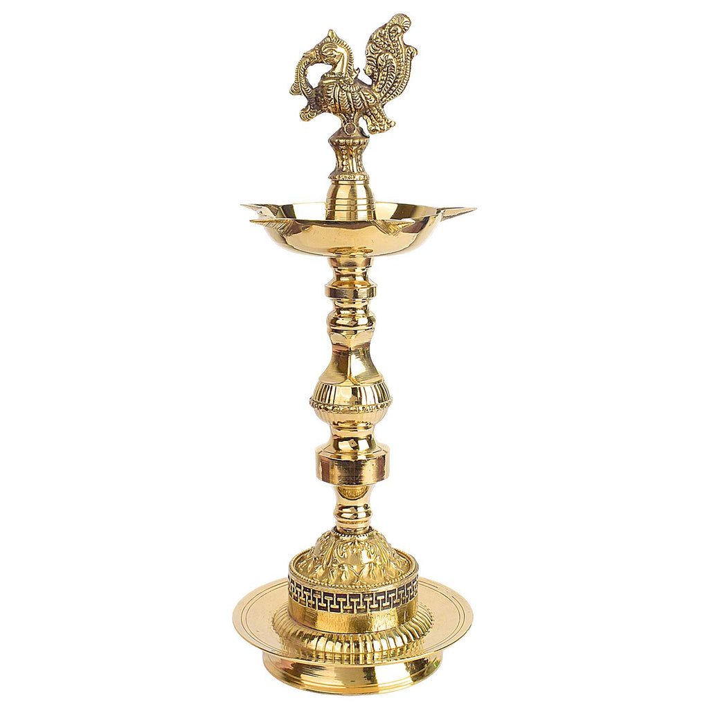 Buy 12 Inch Embossed Peacock Kerala Stand 1 Step Diya | Satvikstore.in – satvikstore.in