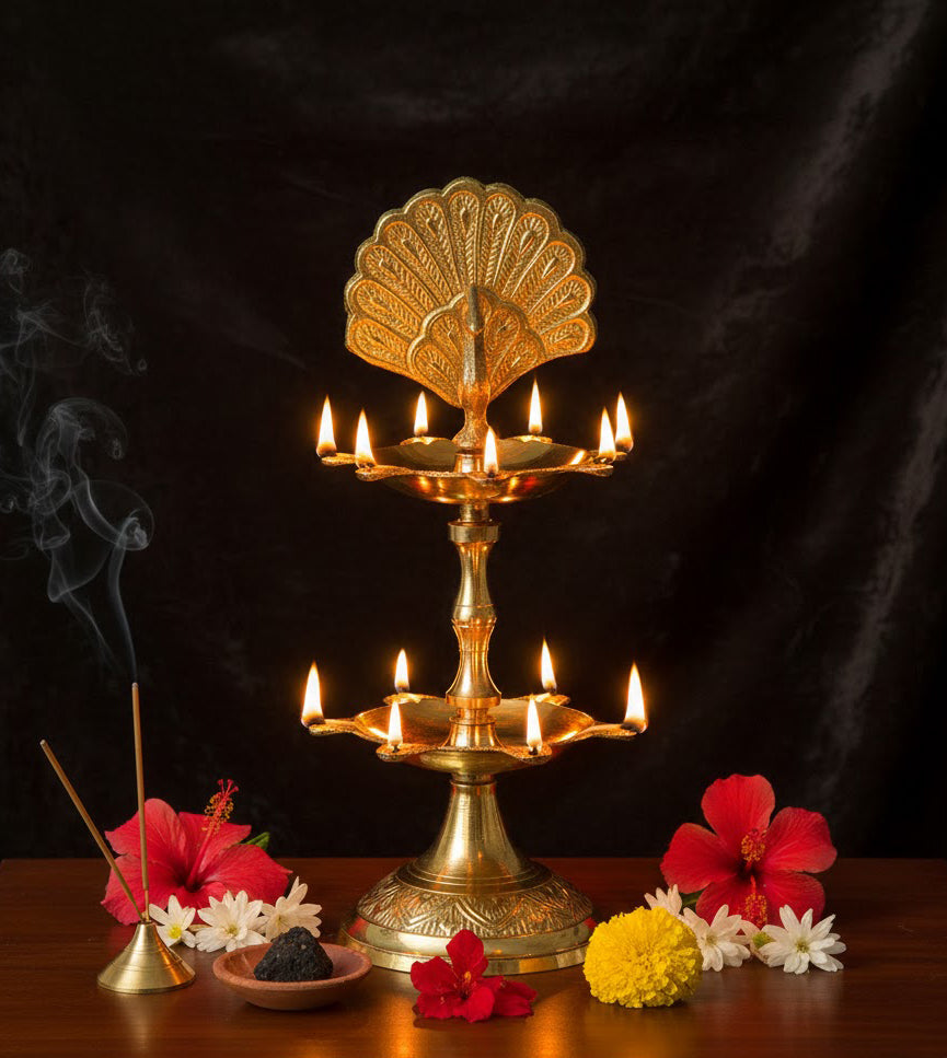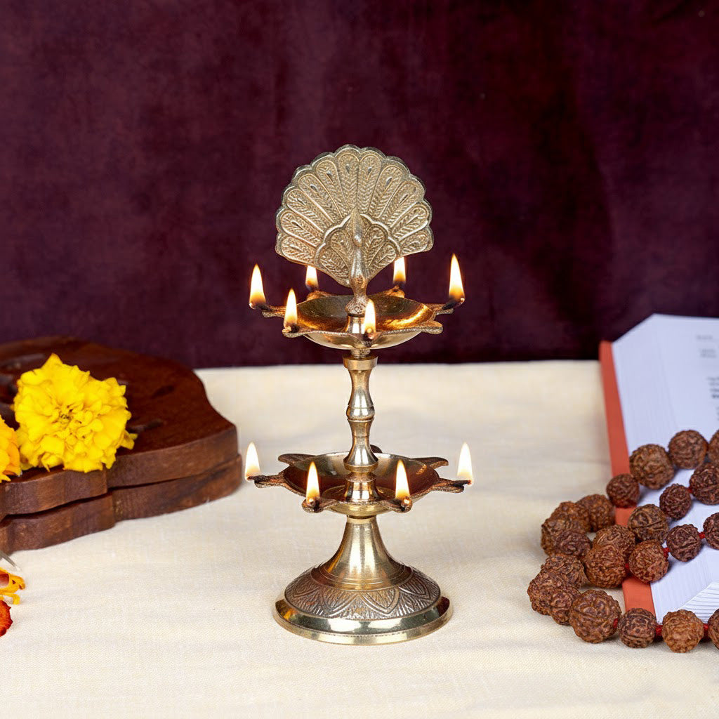 • Item name: 6.1 Inch Brass Flying Peacock 2 Step Kerala Samai DeepamΒ
