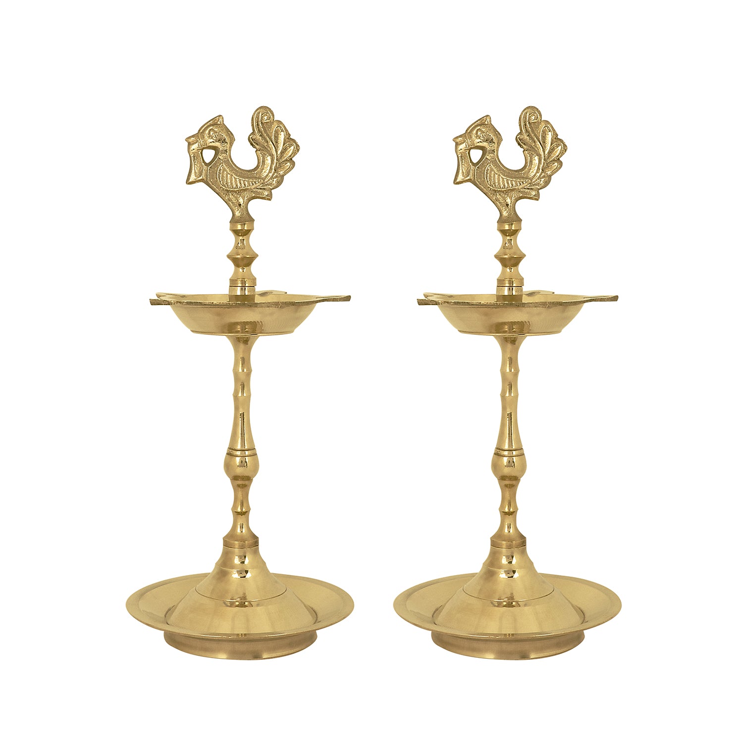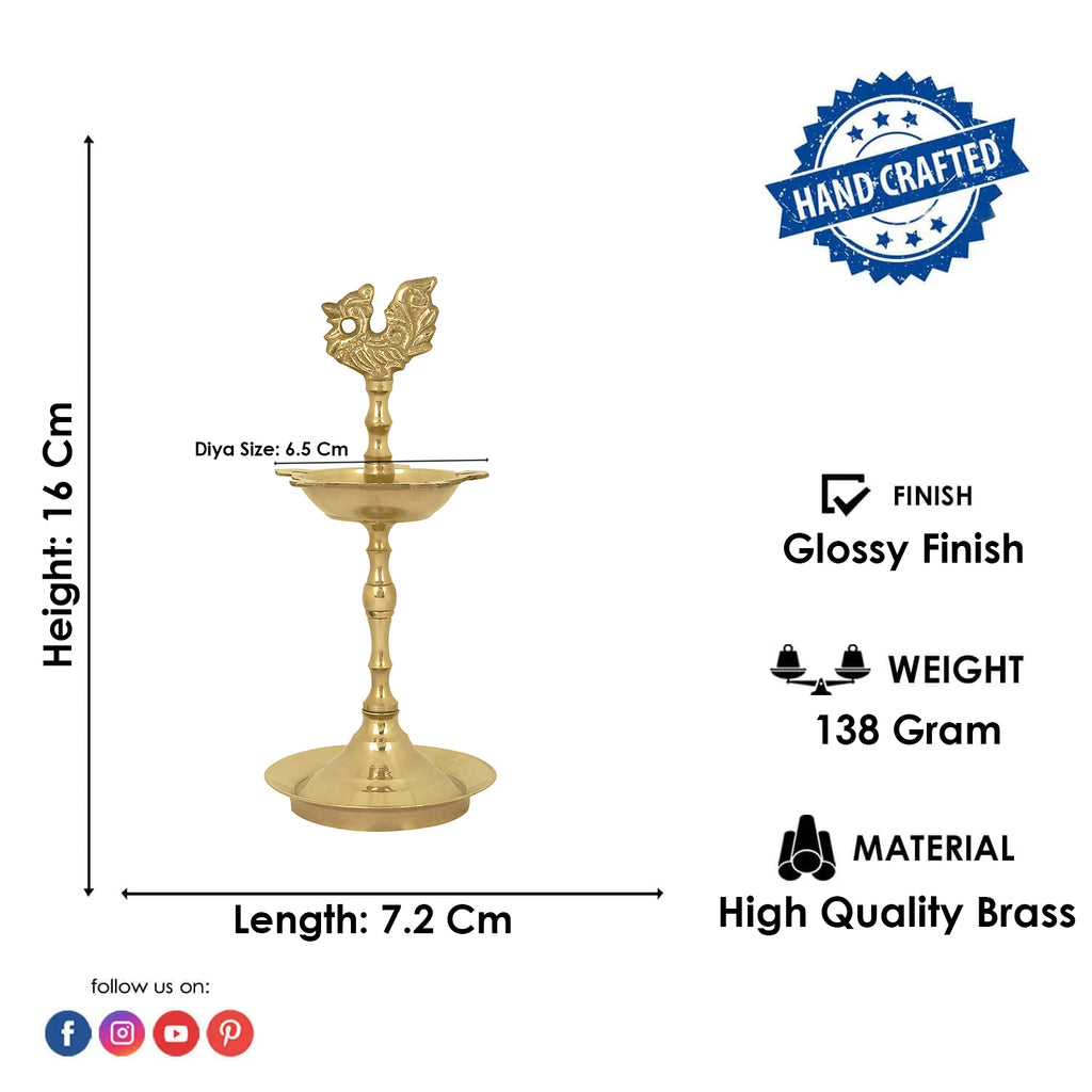 6.5 Inch Brass Peacock Kerala Diya | Brass Peacock Diya | Kerala Pooja Lamp | Brass Deepam | Traditional Brass Diya | Spiritual Brass Lamp | Pooja Diya | Kerala Temple Lamp | Handcrafted Brass Diya | Brass Oil Lamp | Peacock Design Diya | Indian Ritual Lamp