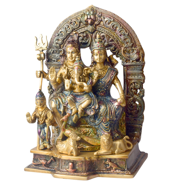 11.8 Inch Handcrafted Brass Shiv Parivaar Statue