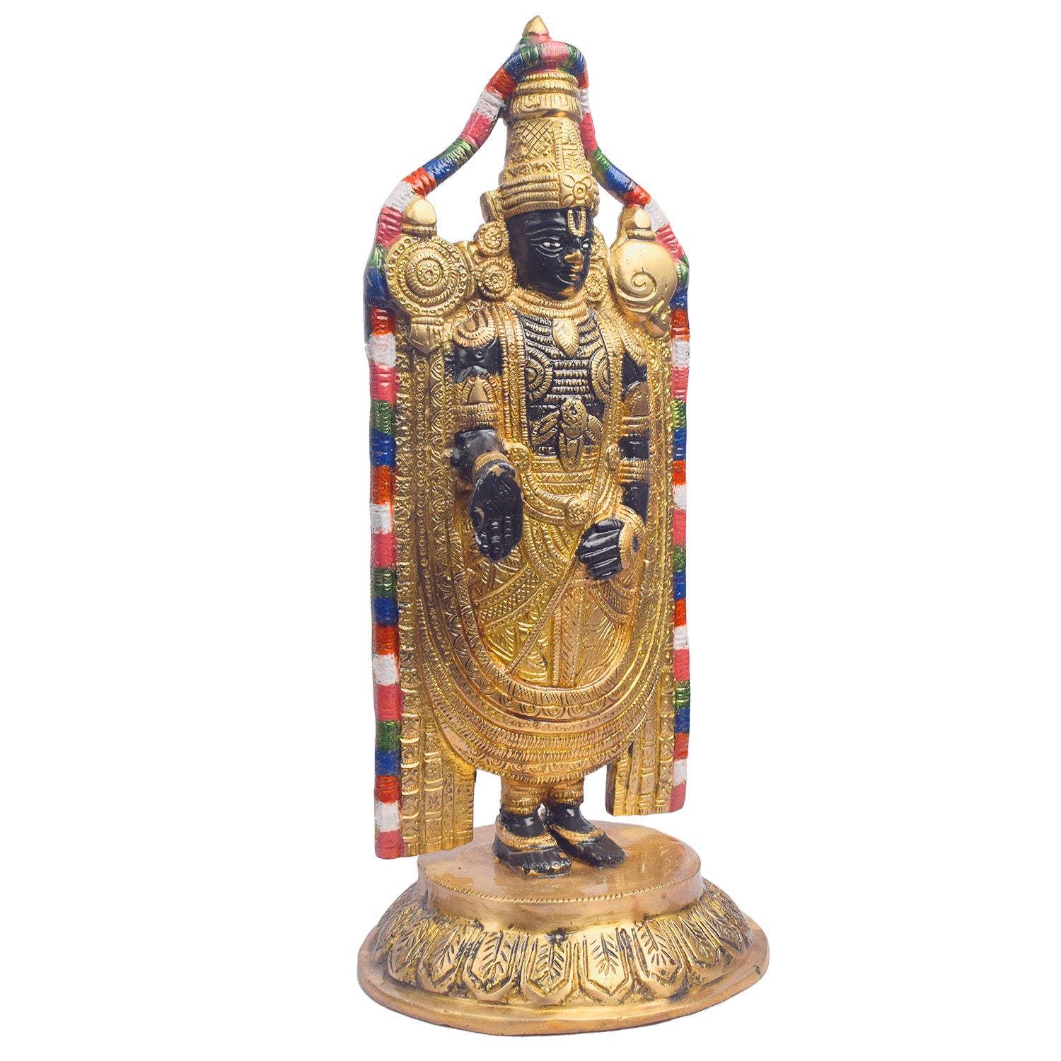 About Product: This 12.2-inch Tirupati Balaji statue beautifully captures the divine presence of Lord Venkateshwara, the beloved deity of the Tirupati temple. Crafted with exquisite attention to detail, the statue radiates grace, serenity, and spiritual blessings. Known for his power to bestow prosperity, health, and peace, Lord Balaji's idol brings a sense of calm and positive energy to any space. Perfect for your home, temple, or prayer room, this statue serves as a constant reminder of devotion and divine grace, inviting Lord Venkateshwara's blessings into your life.
