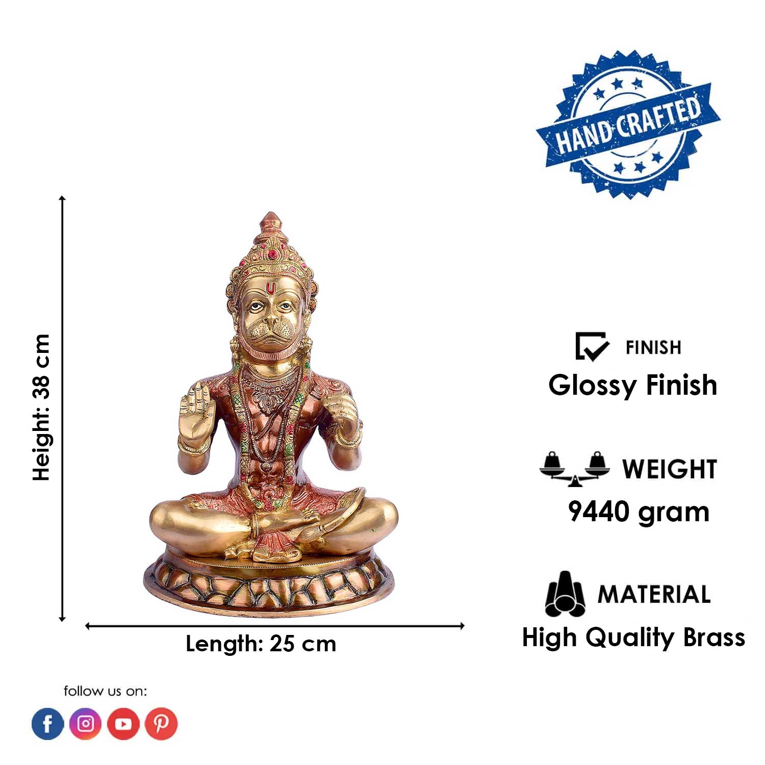 • Material: The Bajrangbali is made from High Quality and Virgin Brass Material.