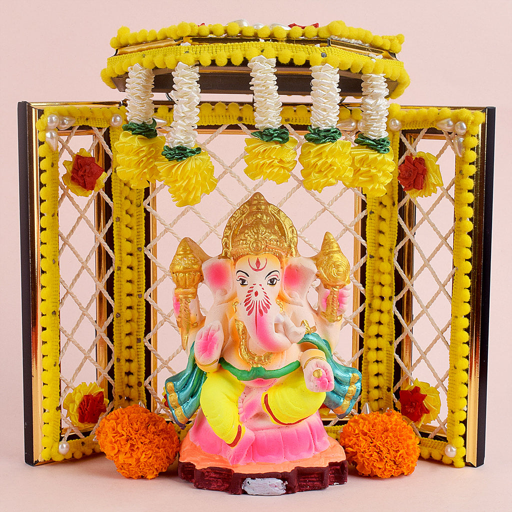 Eco-Friendly Ganesha statues are made of 100% biodegradable and eco-friendly material by using Shadu Mati Clay Mitti, which dissolves easily in water. The colours used are also natural, and they decompose and dissolve in water easily. Although they have been made all across India, West Bengal and Maharashtra often employ skilled artisans to make them.