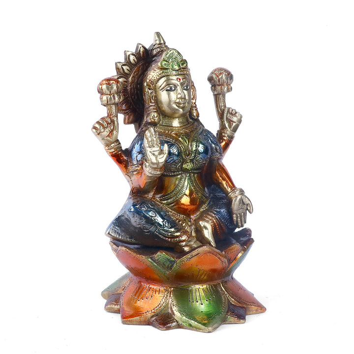 7.4 Inch Artistry Brass Colorful Lakshmi Ganesha Idol