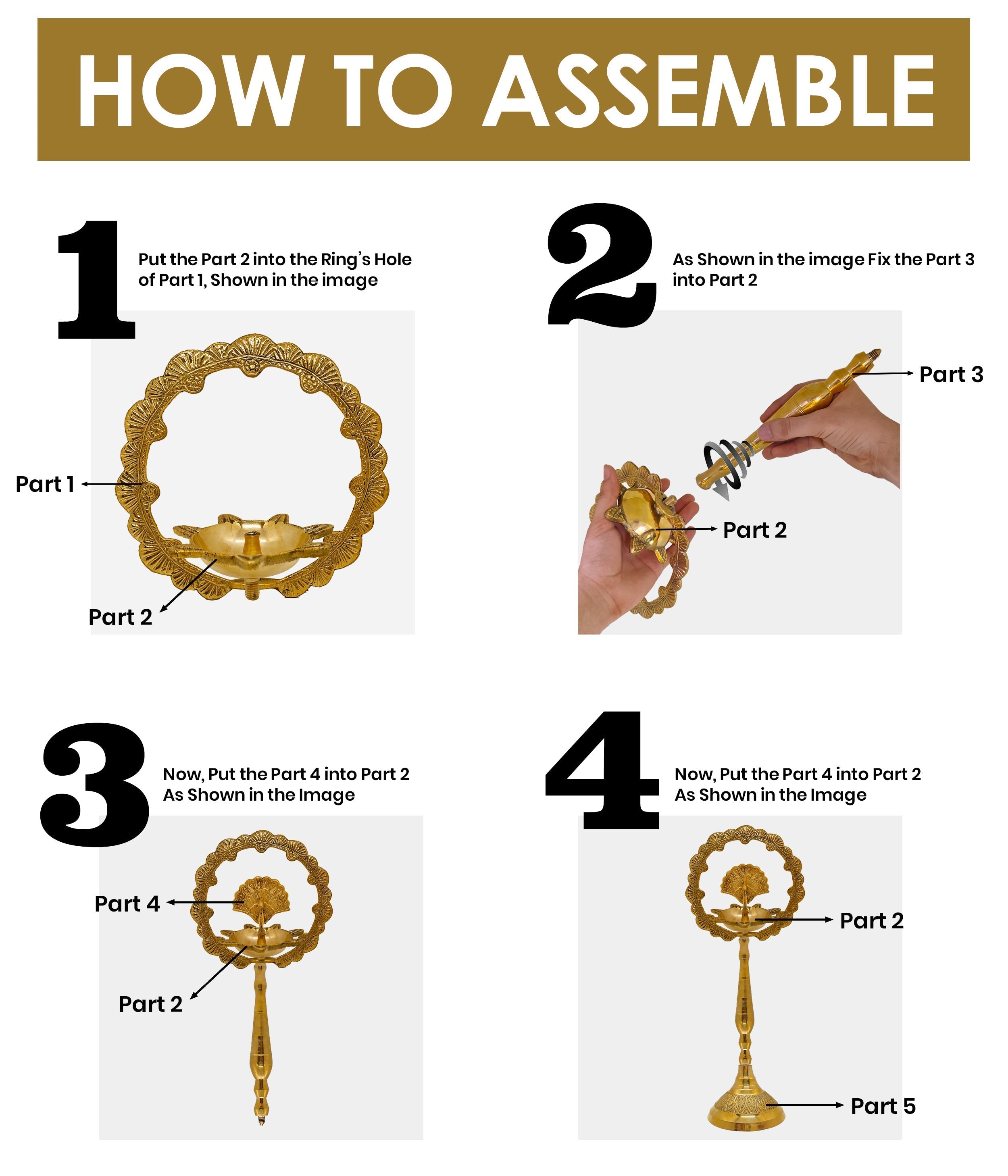 • Size/ Dimension: Height: 41 cm, Ring Diameter: 17 cm, Dia Length: 10.16 cm. Follow the instruction carefully mentioned in the 3rd Image While assembling the Peacock Diya.
