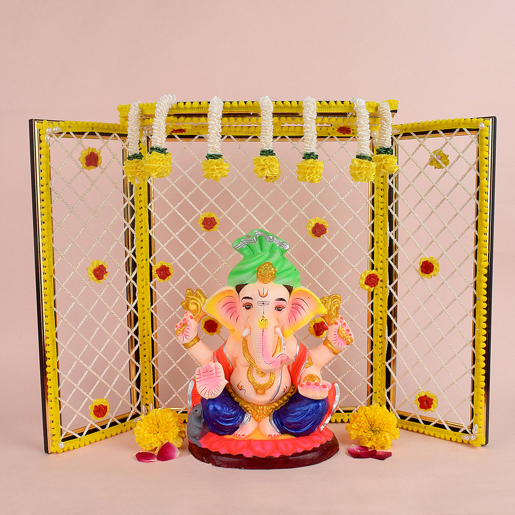 Eco-Friendly Ganesha statues are made of 100% biodegradable and eco-friendly material by using Shadu Mati Clay Mitti, which dissolves easily in water. The colours used are also natural, and they decompose and dissolve in water easily. Although they have been made all across India, West Bengal and Maharashtra often employ skilled artisans to make them.