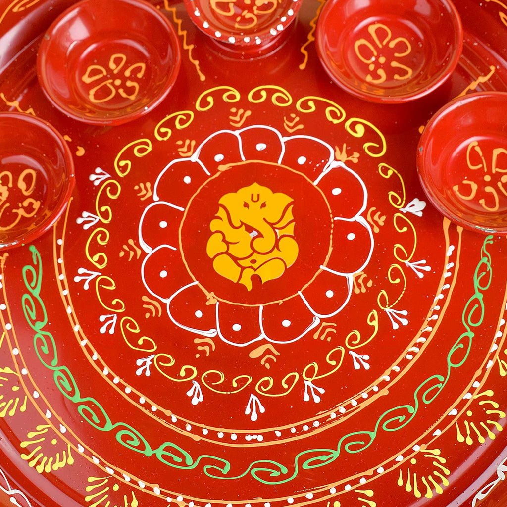 • Package Contains: 1 Pc Puja Thali Set (Thali, Incense Holder, Diya, Bowl)
