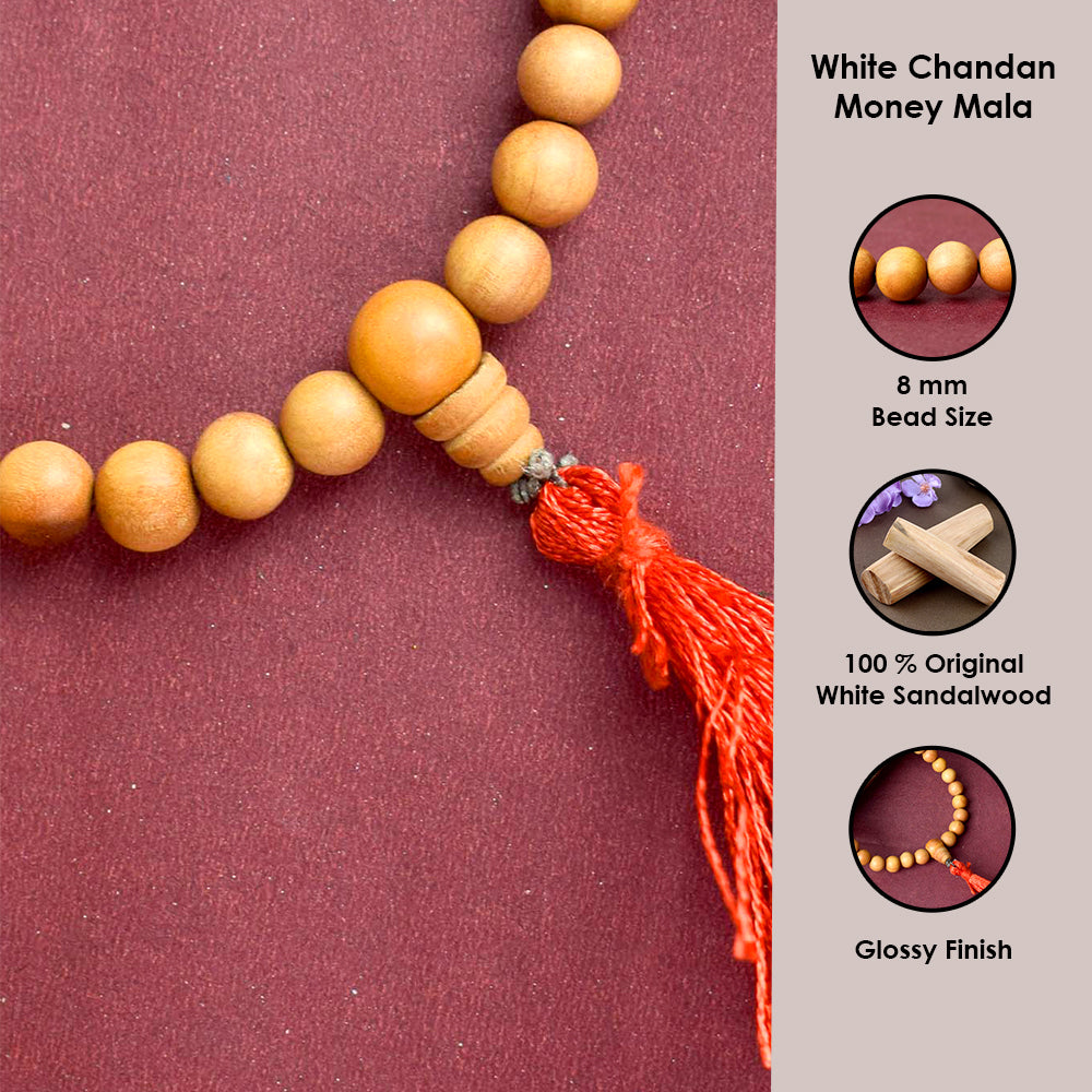 Buy 27 Bead White Chandan Money Mala for Wealth | Satvikstore.in – satvikstore.in
