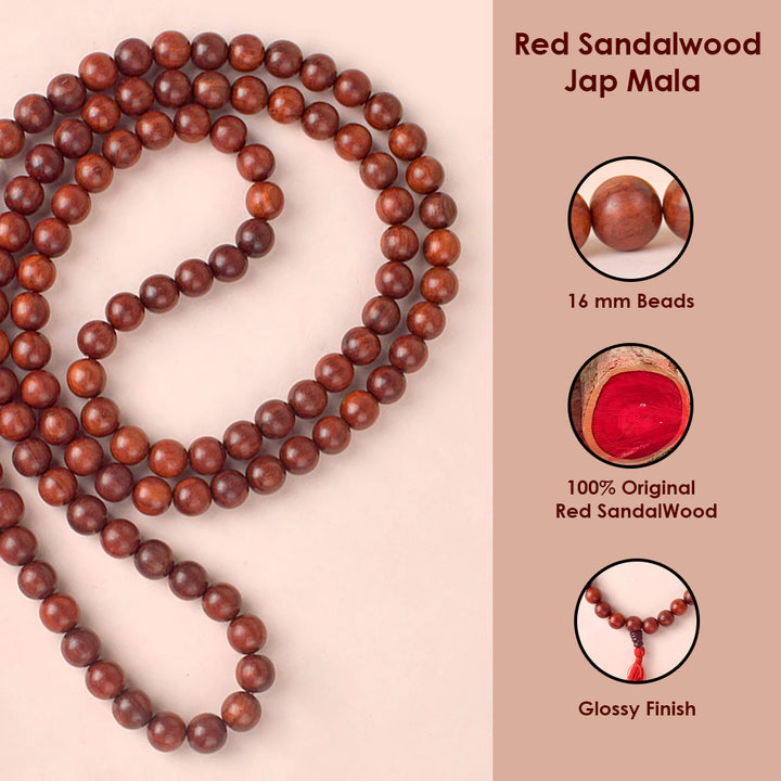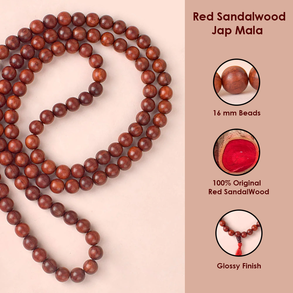 Certified 16mm 100% Original Authentic Pure Red Sandalwood Jap Mala (Andhra Pradesh)
