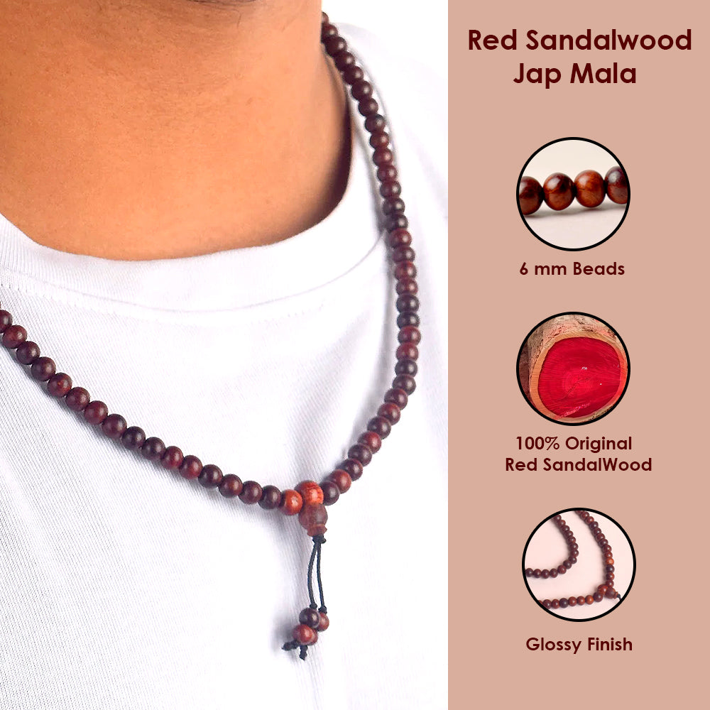 Certified 6mm 100% Original Authentic Pure Red Sandalwood Jap Mala (Andhra Pradesh)