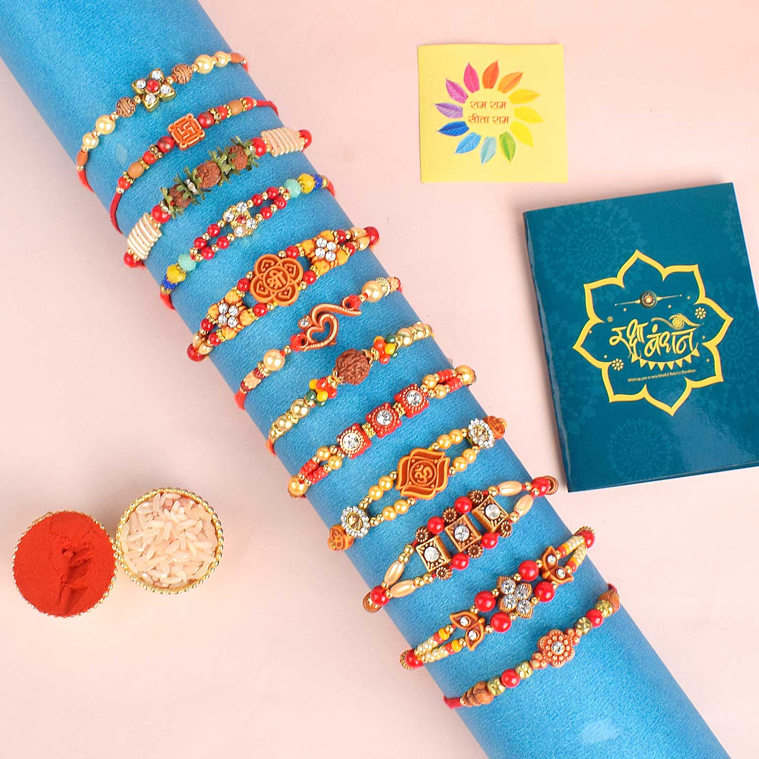 • Package: Men Rakhi (Set of 12), Rakhi Roli Chawal Pack, Sticker of Ram & Sita