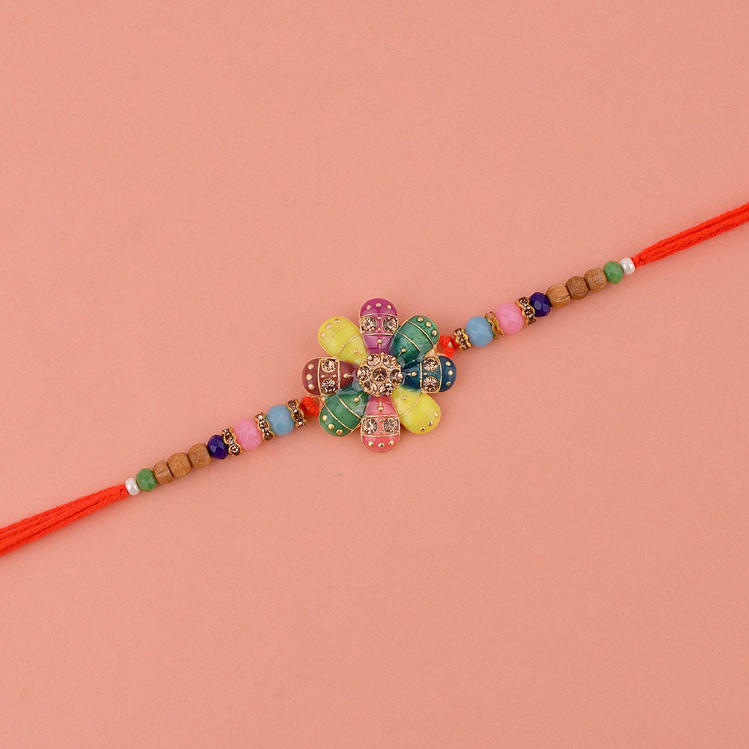 Beaded Rakhi: Adorned with intricate beads, our beaded rakhi collection exudes charm and elegance. Celebrate the joyous bond with your siblings as you tie these vibrant and delightful rakhis on their wrists.
