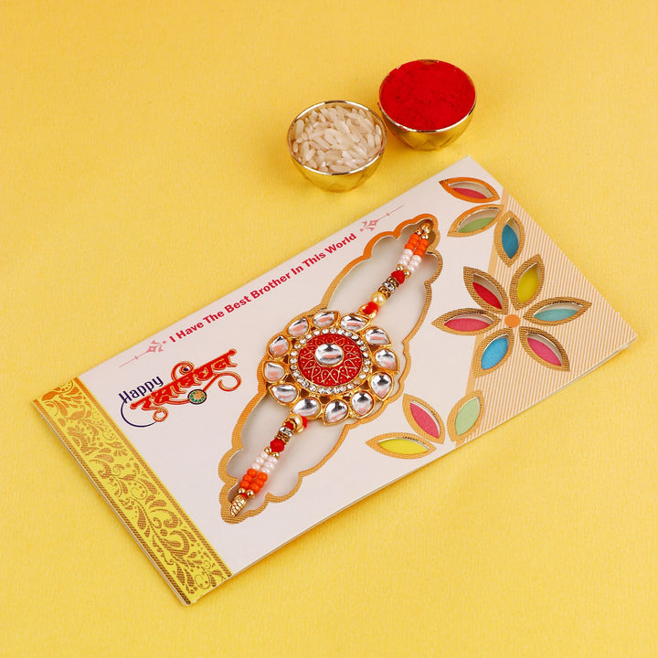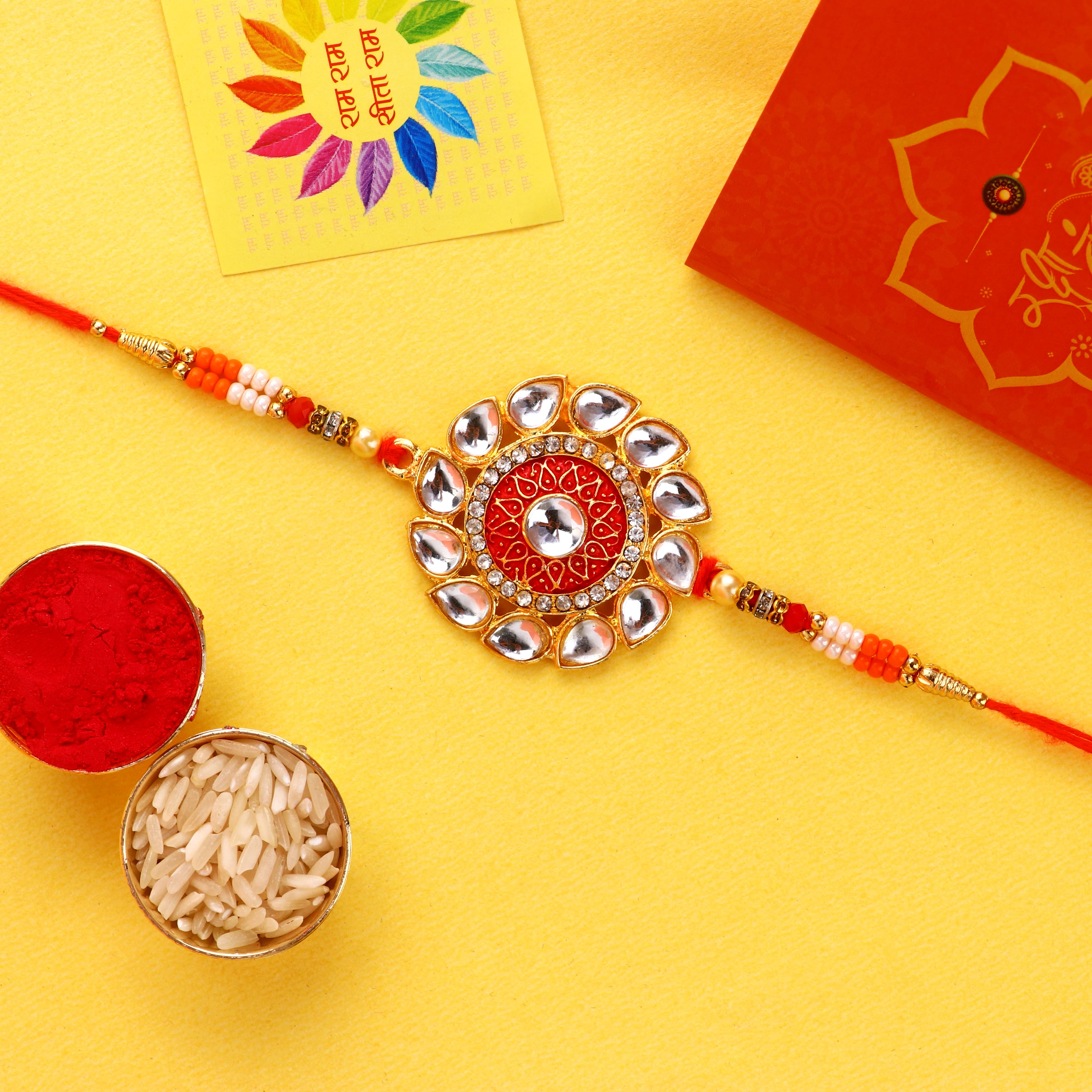 • Item Name: Charm of Eternity Kundan Rakhi for a Forever Connection