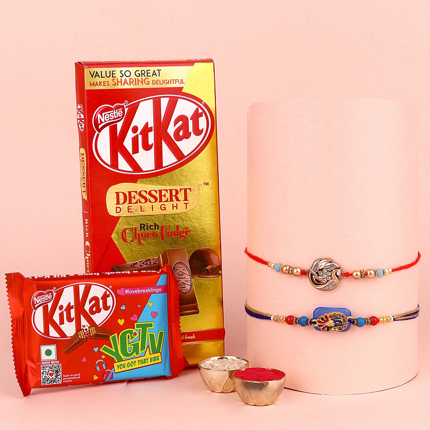 • Package: Set of 2 Bhaiya Rakhi, 1 Greeting card, 1 Roli Chawal Bottle, 1Β Chocolate Pack