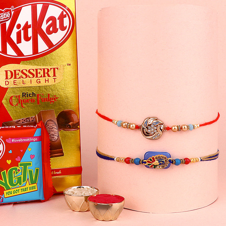 Meenakari Rakhi Set of 2: Adorned with intricate Meenakari work, these rakhis exude the essence of cultural heritage and artistic finesse. The vibrant colors and delicate patterns make these rakhis a true celebration of sibling love.