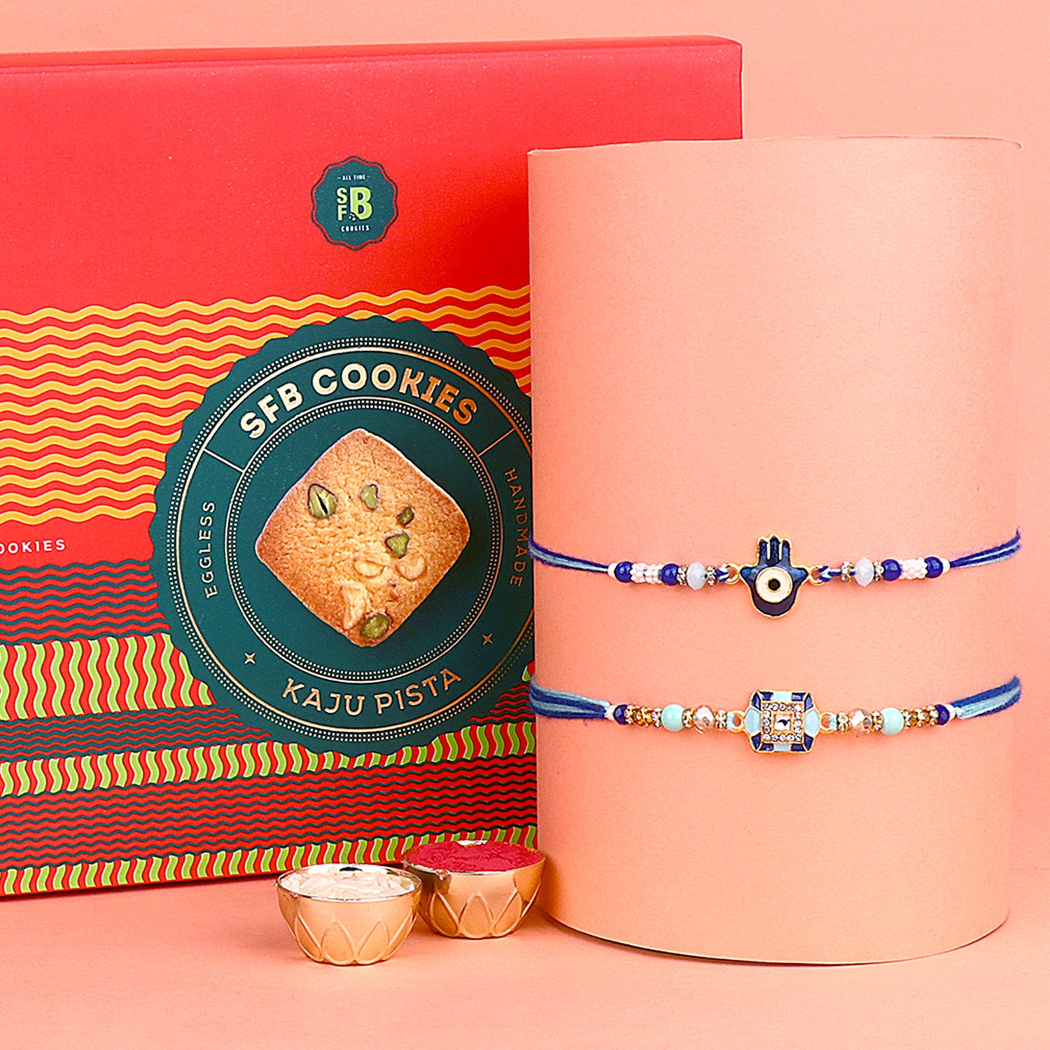 • About Product: Celebrate the joyous occasion of Rakhi with our delightful Rakhi with Cookies gift set. This perfect combination features a beautifully crafted Rakhi symbolizing the bond between siblings, paired with a selection of scrumptious cookies that will leave your taste buds craving for more. Indulge in the mouthwatering flavors and textures of these delectable treats, perfectly complementing the heartfelt sentiments shared between brothers and sisters. Whether you're near or far, our Rakhi with Cookies gift set is a sweet and thoughtful way to express your love and strengthen the cherished bond you share. Make this Raksha Bandhan truly memorable with this irresistible combination.