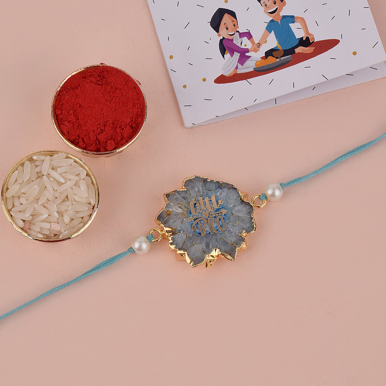 • Package: 1 Pc Agate Stone Little Bro Rakhi, Roli Akshat, Greeting Card