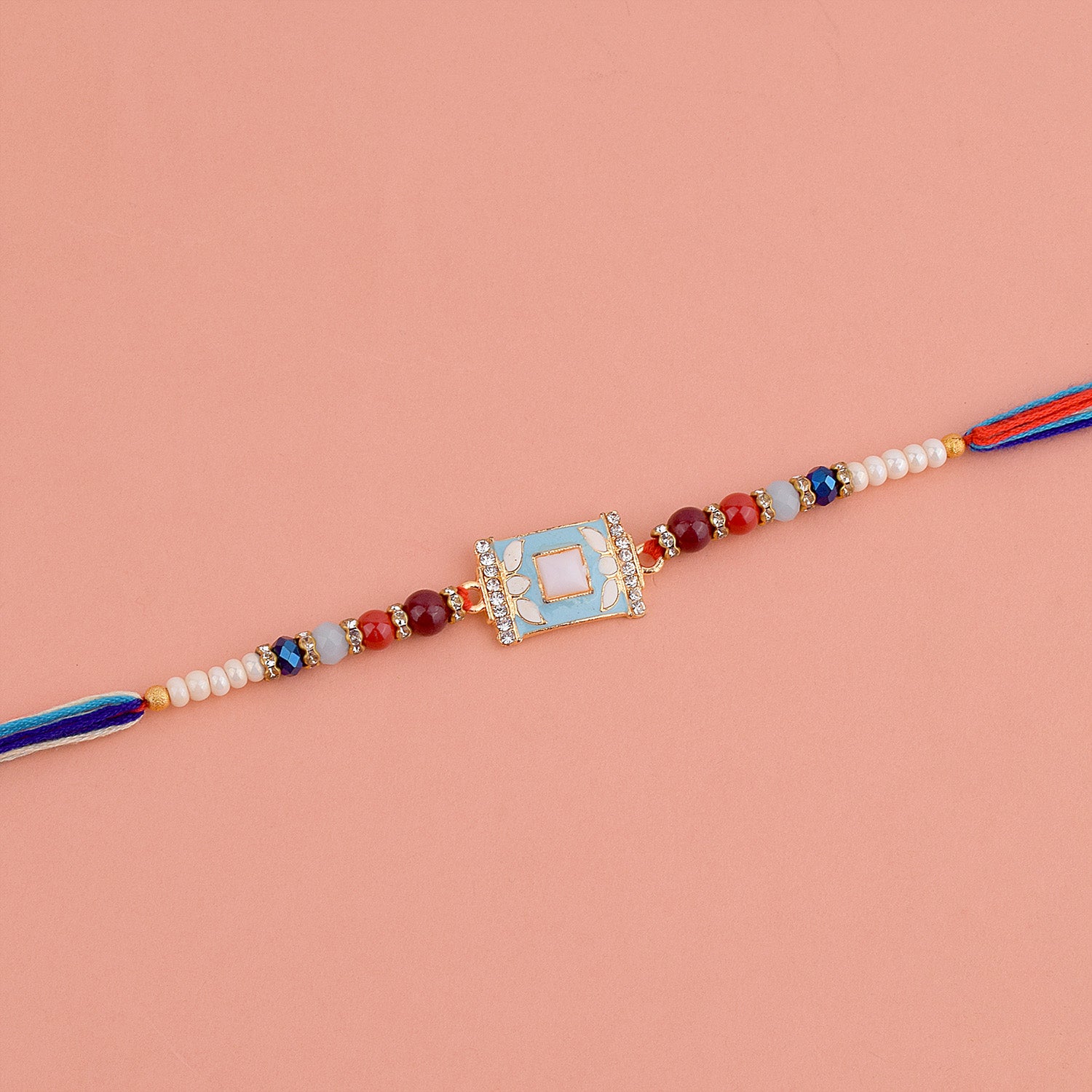 Beaded Rakhi: Adorned with intricate beads, our beaded rakhi collection exudes charm and elegance. Celebrate the joyous bond with your siblings as you tie these vibrant and delightful rakhis on their wrists.
