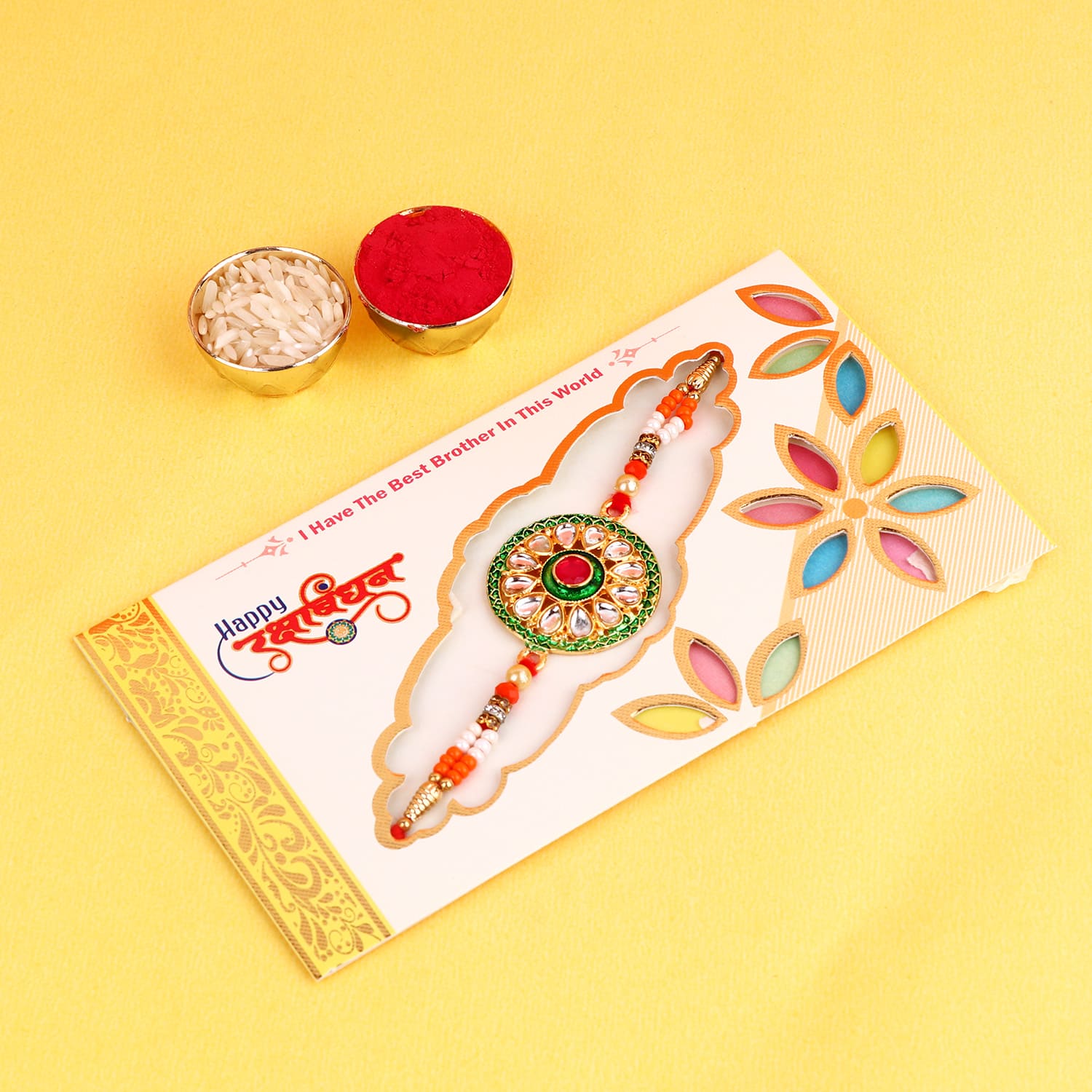 • Item Name: Majestic Kundan Rakhi for a Resplendent Bond