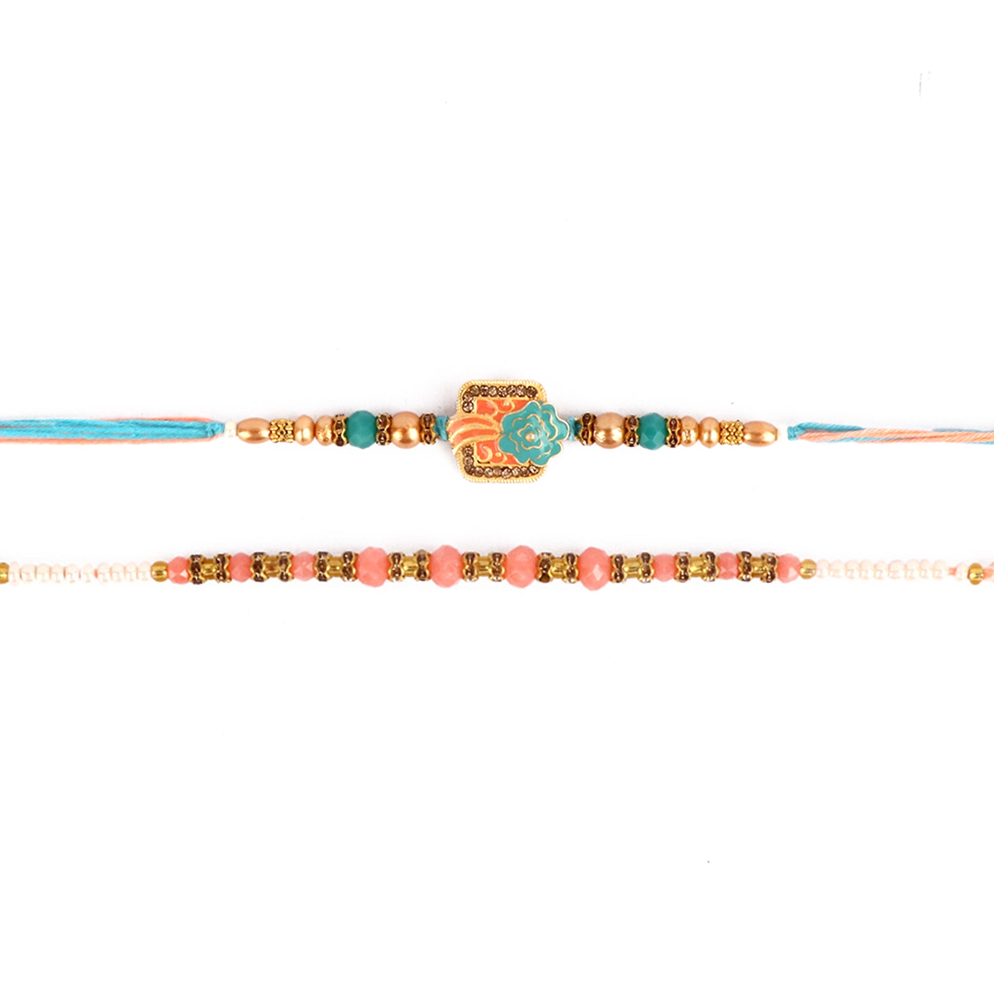 Beaded Bhaiya Rakhi Set of 2: Bedecked with colorful beads, these rakhis represent the joyous moments and cherished memories of growing up together. Embrace nostalgia and affection with this delightful beaded rakhi set.