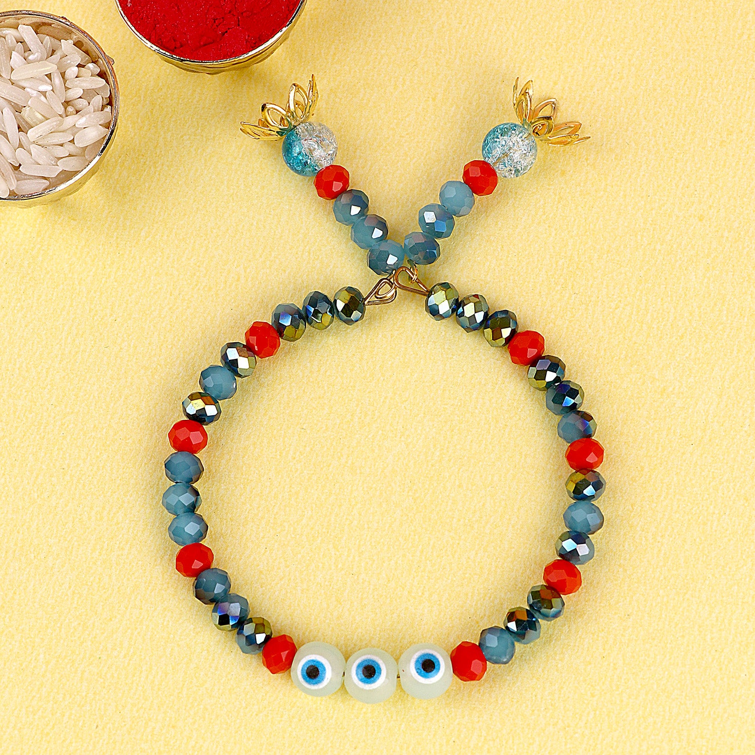 Beaded Bhaiya Rakhi Set of 2: Bedecked with colorful beads, these rakhis represent the joyous moments and cherished memories of growing up together. Embrace nostalgia and affection with this delightful beaded rakhi set.