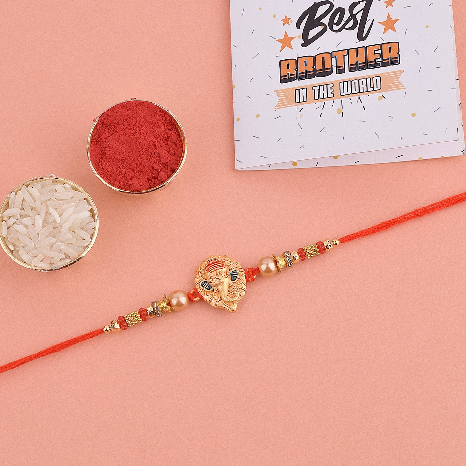 • Package:Β 1 Pc Rakhi, roli akshat and greeting card