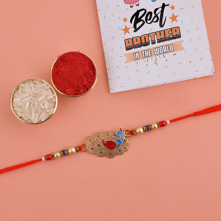 • Package:Β 1 Pc Rakhi, roli akshat and greeting card