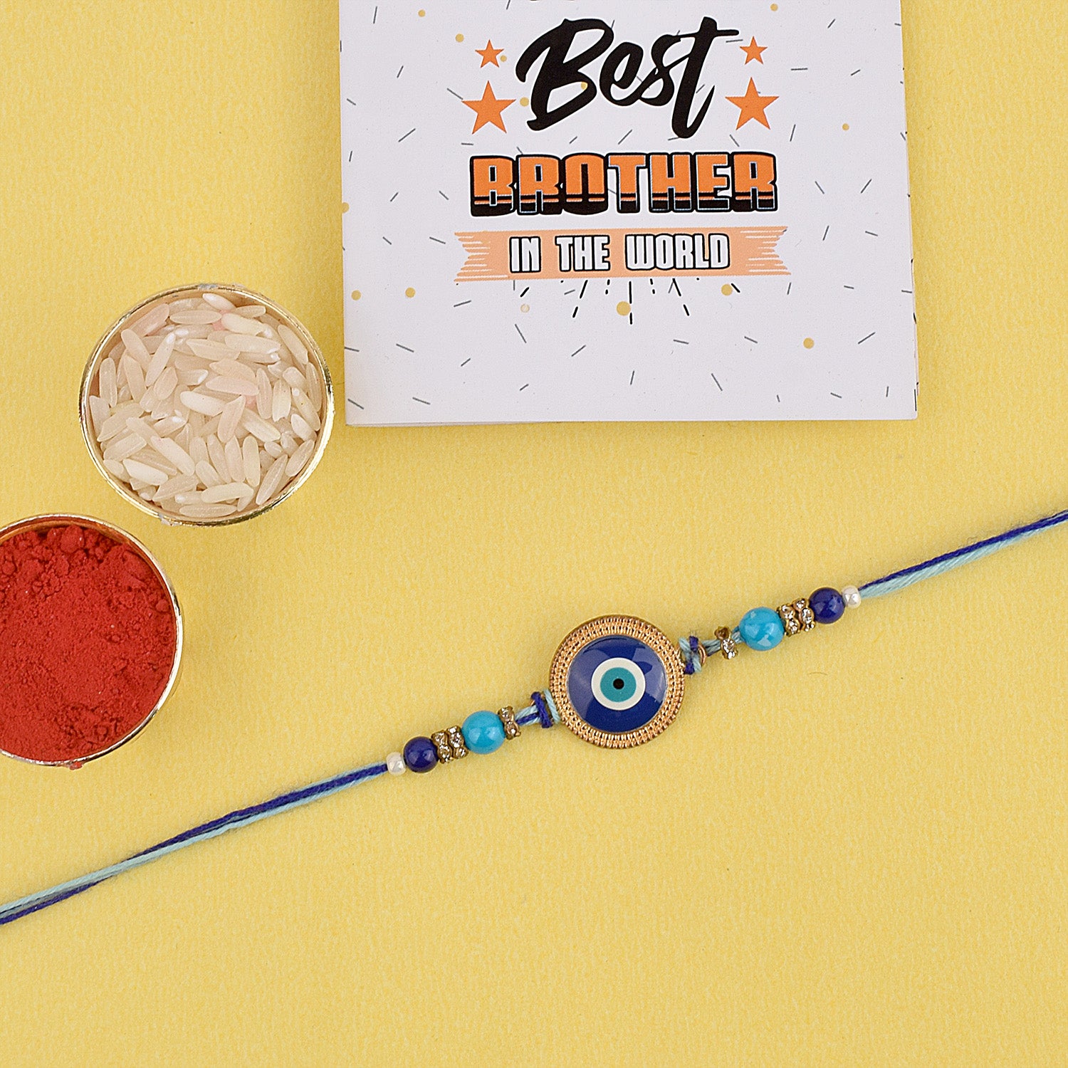 • Package:Β 1 Pc Rakhi, roli akshat and greeting card