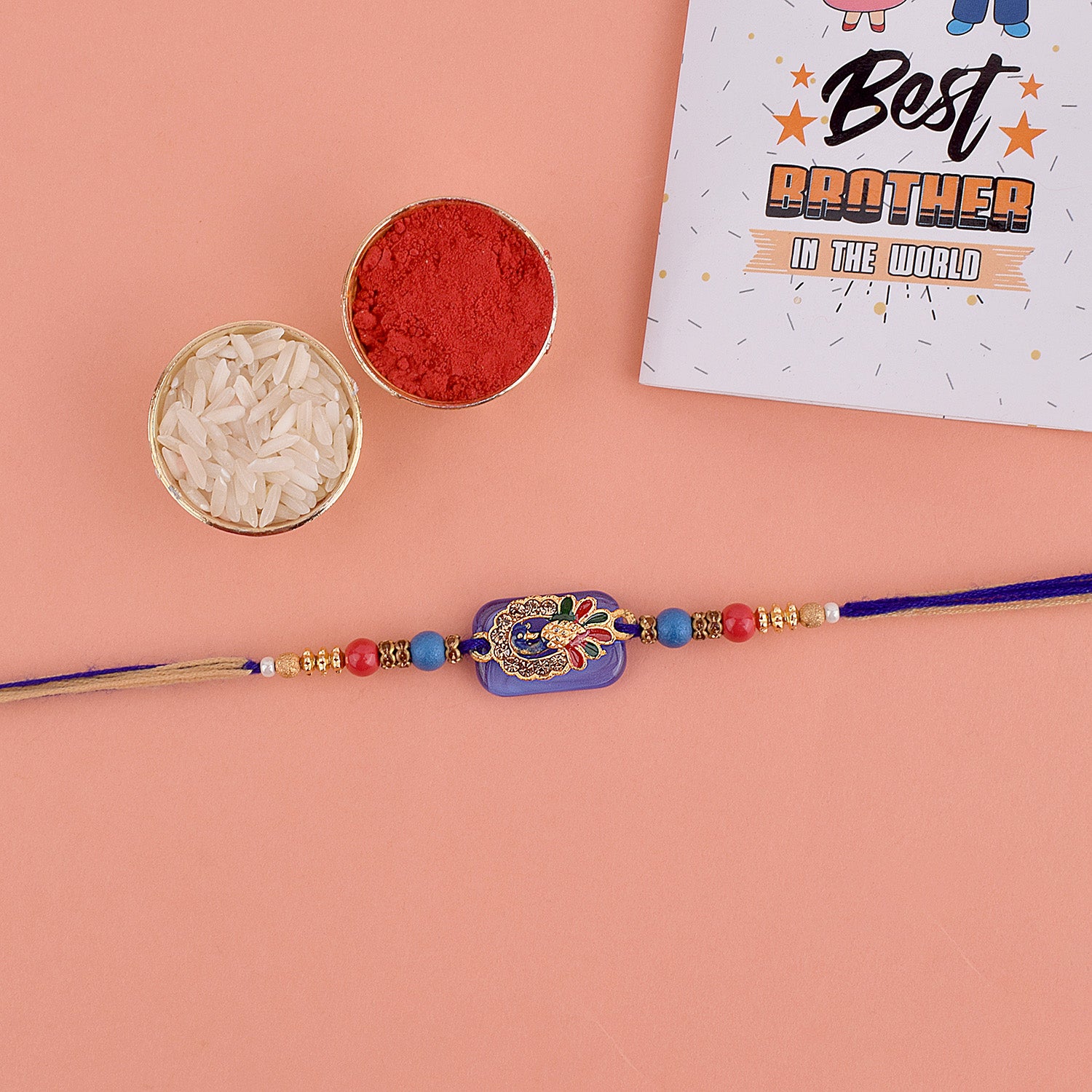 • Package:Β 1 Pc Rakhi, roli akshat and greeting card
