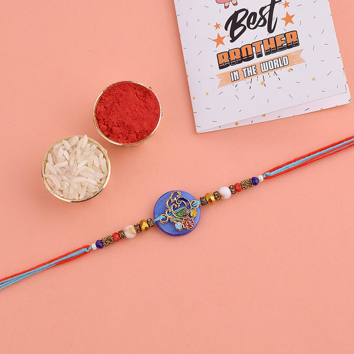 • Package:Β 1 Pc Rakhi, roli akshat and greeting card