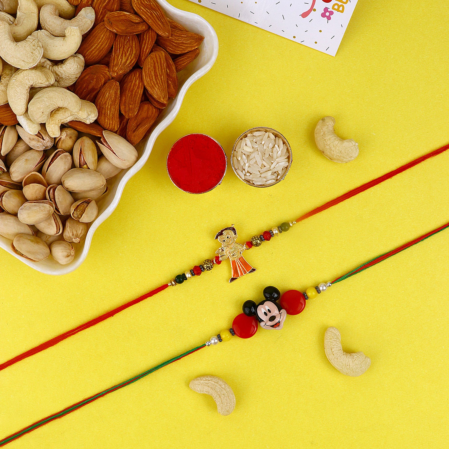 Beaded Bhaiya Rakhi Set of 2: Bedecked with colorful beads, these rakhis represent the joyous moments and cherished memories of growing up together. Embrace nostalgia and affection with this delightful beaded rakhi set.