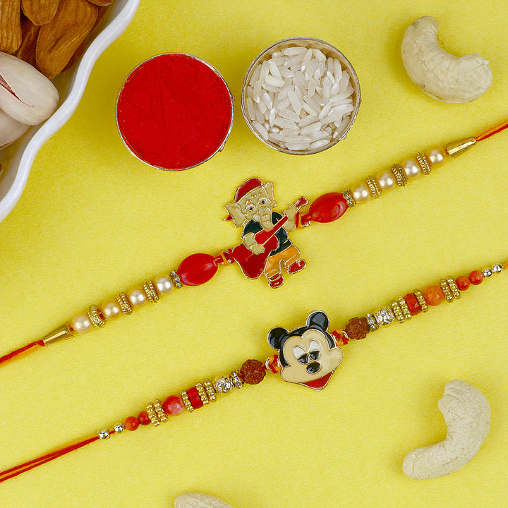 Beaded Bhaiya Rakhi Set of 2: Bedecked with colorful beads, these rakhis represent the joyous moments and cherished memories of growing up together. Embrace nostalgia and affection with this delightful beaded rakhi set.