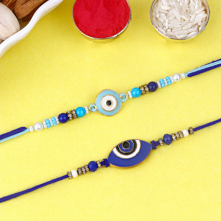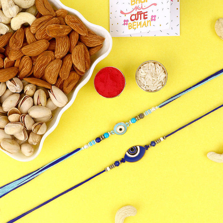 Beaded Bhaiya Rakhi Set of 2: Bedecked with colorful beads, these rakhis represent the joyous moments and cherished memories of growing up together. Embrace nostalgia and affection with this delightful beaded rakhi set.