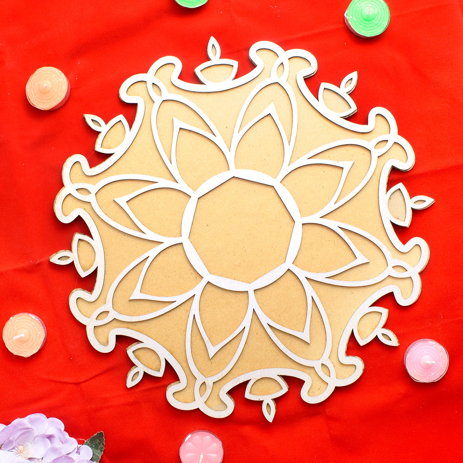 Buy MDF Wooden Mat Stencils | Flower Design Rangoli | Satvikstore.in – satvikstore.in