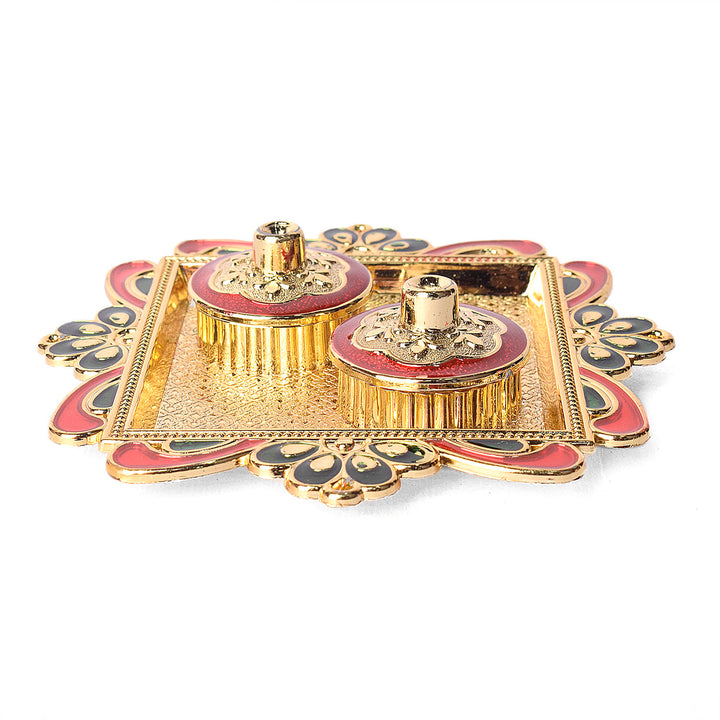 Kumkum Holder Adorned with Intricate Traditional Patterns