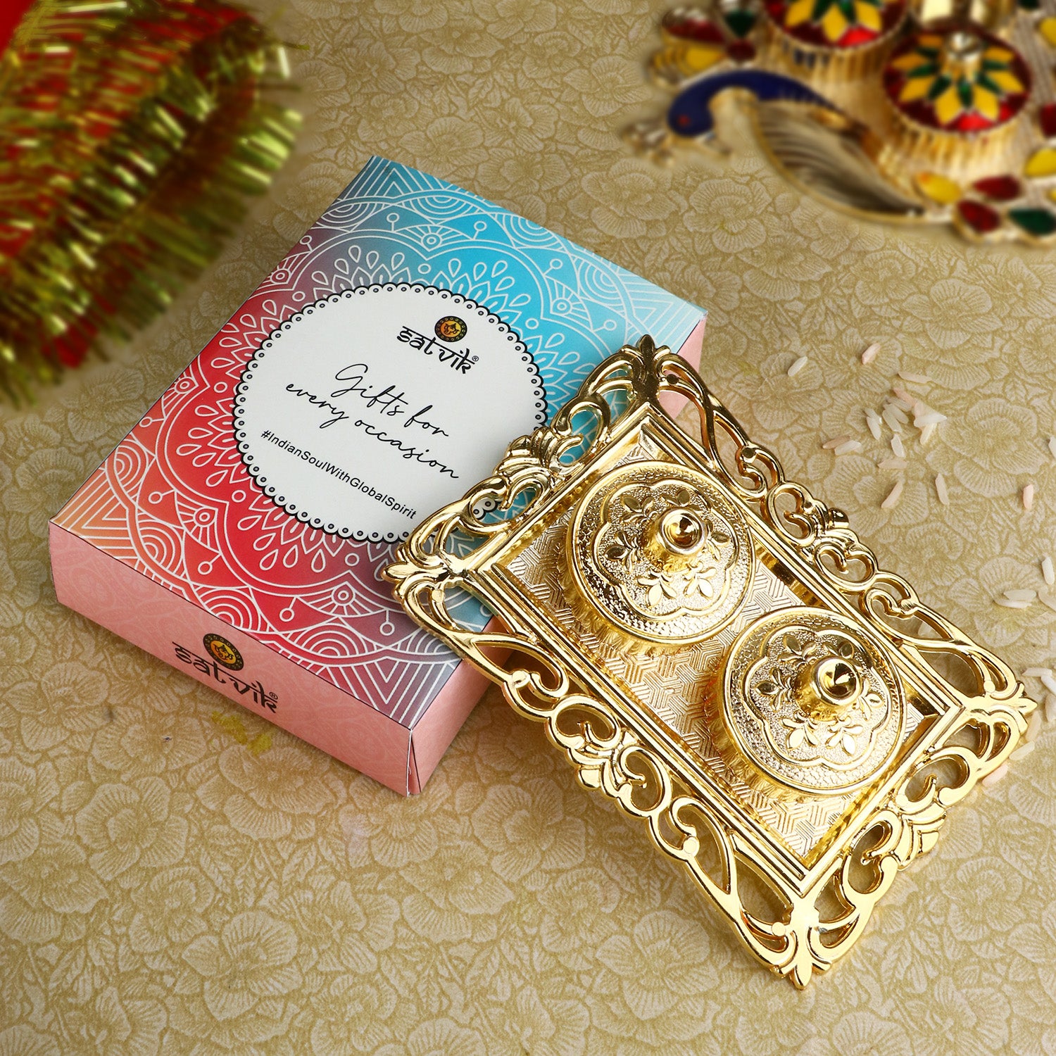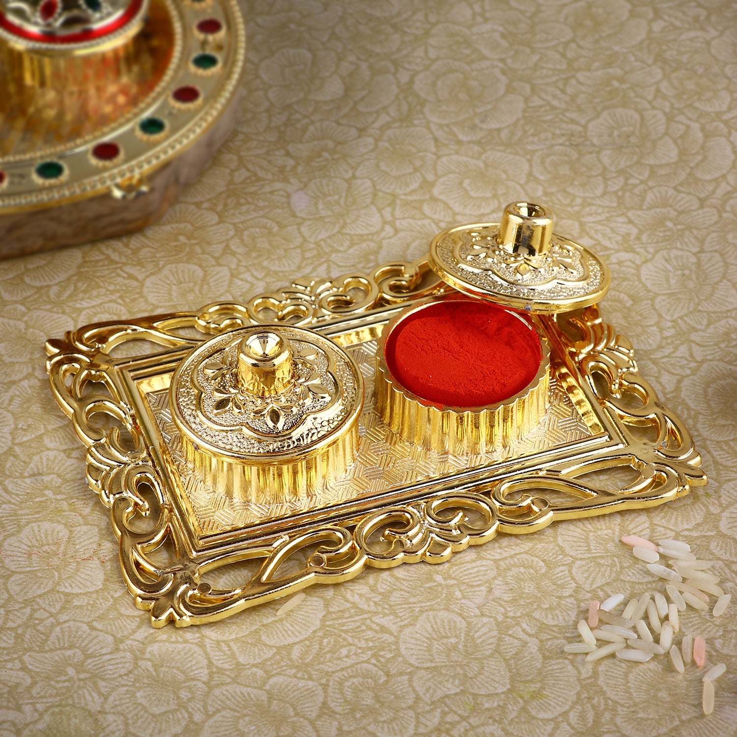 Buy Online | Ravishing Rectangular Roli Akshat Platter |Satvikstore.in – satvikstore.in