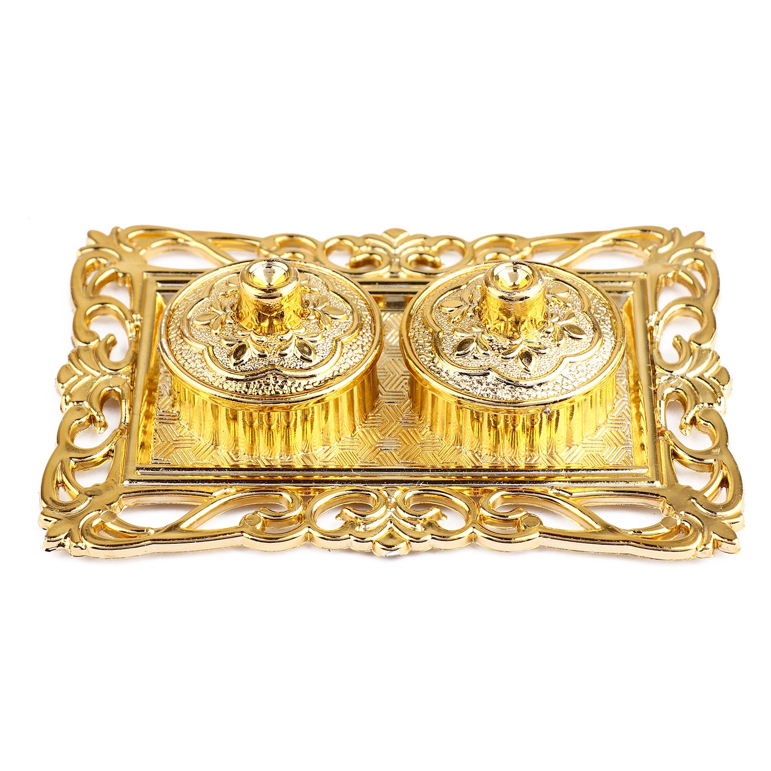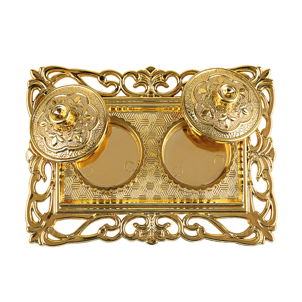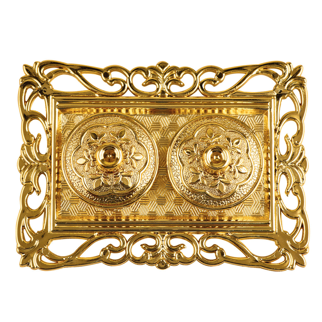 Rectangular Roli Akshat platter | Roli chawal rectangular tray | Pooja thali for roli akshat | Rectangular tilak plate | Decorative roli akshat tray | Roli akshat pooja accessory | Tilak platter rectangular shape | Roli akshat pooja thali | Ritual tilak tray | Traditional pooja platter | Roli chawal holder | Rectangular pooja plate |