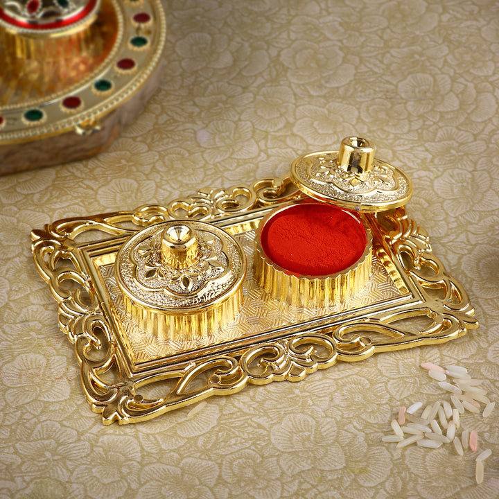• Item Name:  Ravishing Rectangular Roli Akshat Platter