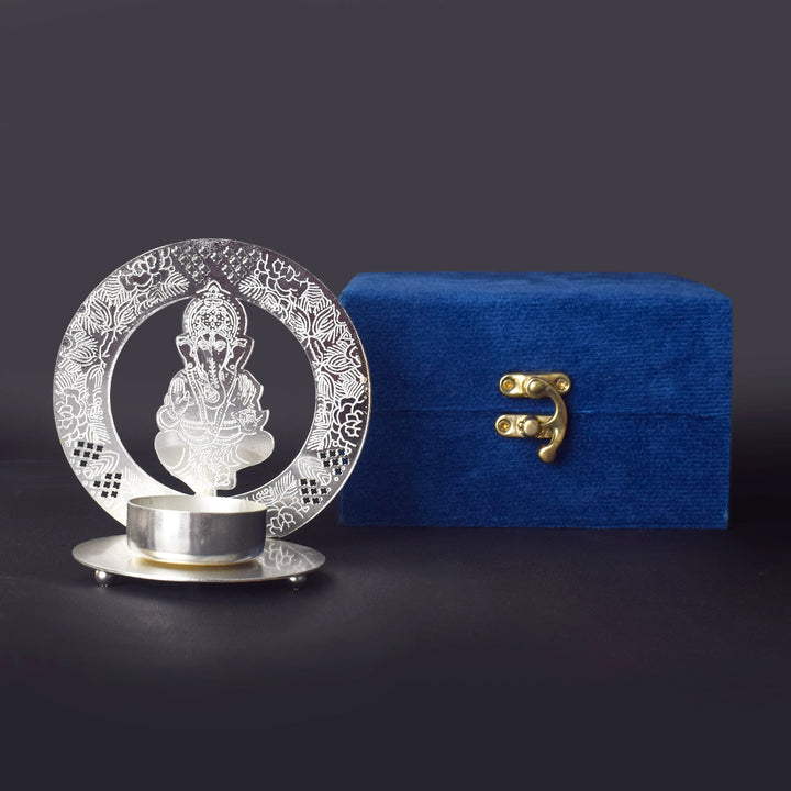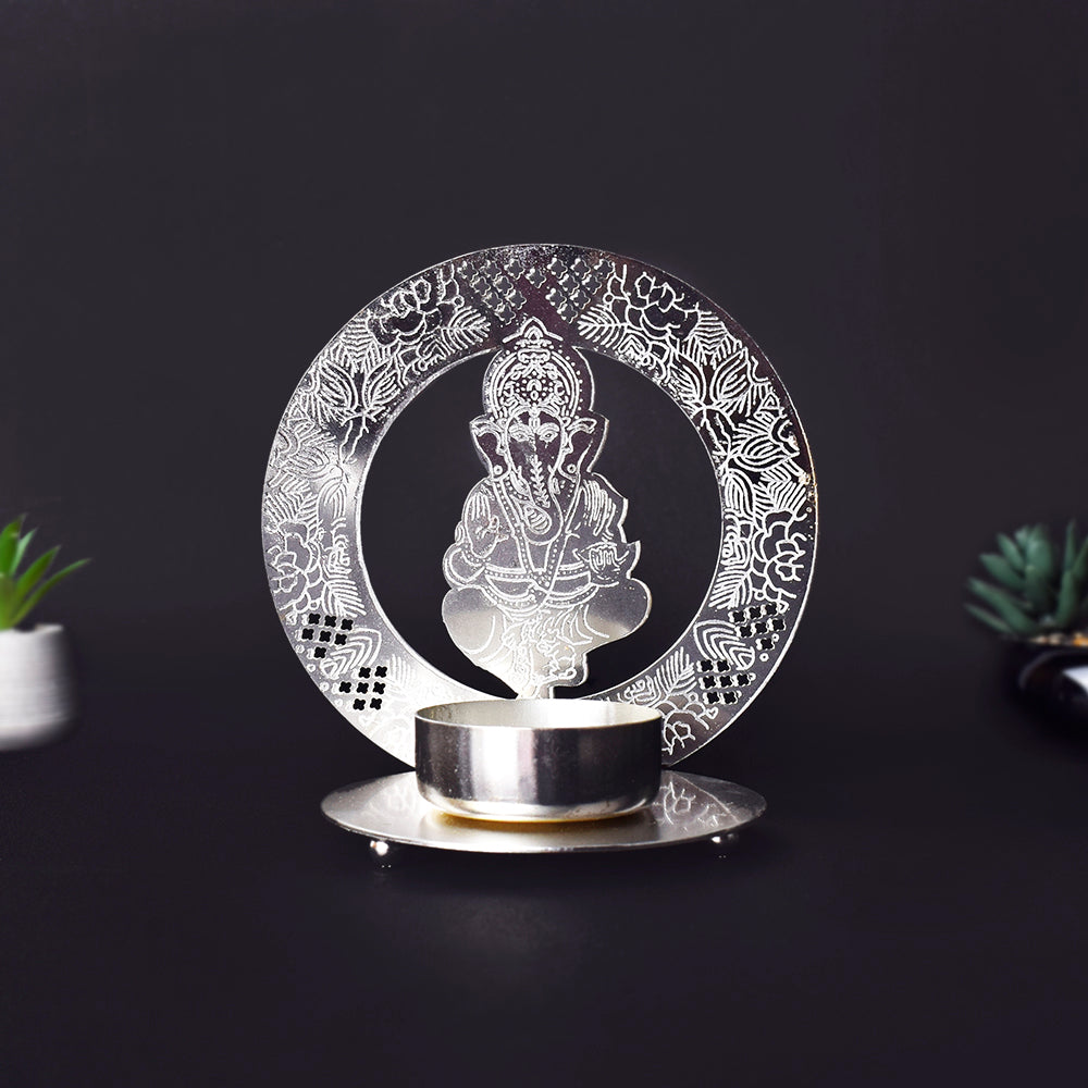 Buy Silver Ganesh Tea Light Candle Holder for Pooja | Satvikstore.in – satvikstore.in