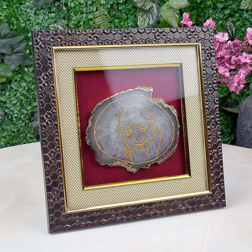 Enchant your guests with our mantra frame showpiece. Crafted with intricate details, this showpiece beautifully displays auspicious mantras or spiritual verses. The accompanying stand adds a touch of sophistication, making it a perfect gift for any occasion. Spread positivity and serenity with this divine masterpiece.
