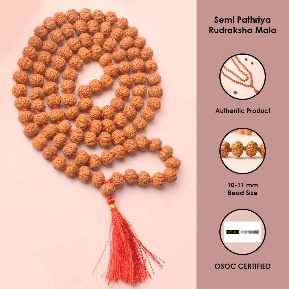 Shop Certified 10-11mm Semi Pathriya Rudraksha Mala | Satvikstore.in – satvikstore.in